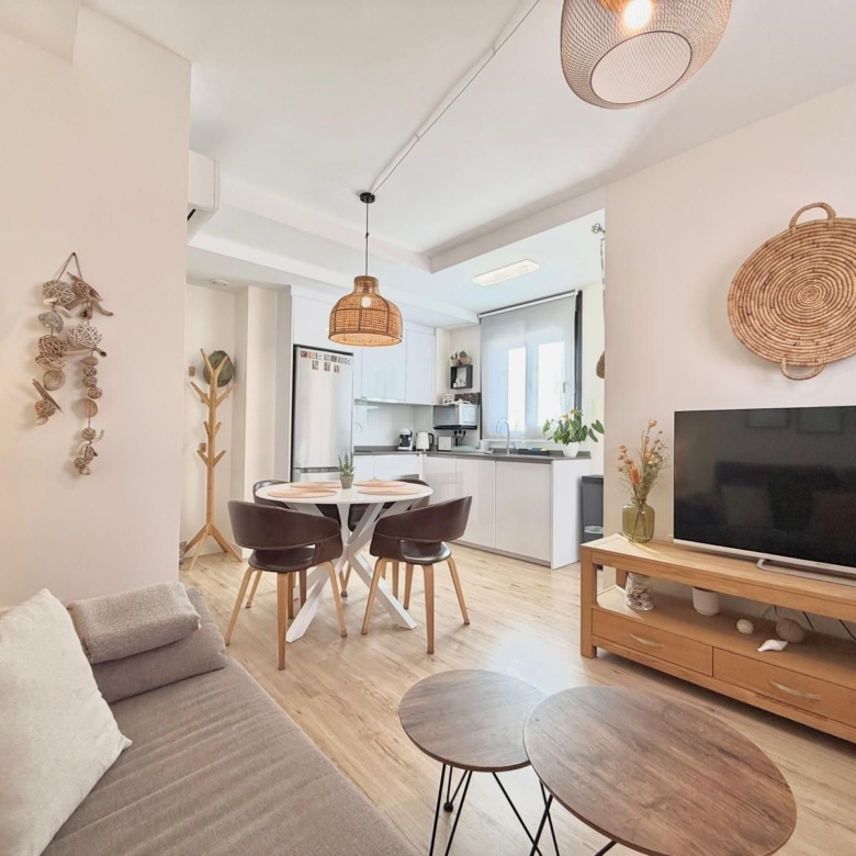 The property offers a bright and airy living and dining area that flows seamlessly onto a private sunny terrace, where panoramic views create the perfect backdrop for relaxation or entertaining. A fully fitted kitchen and two generously sized bedrooms provide both practicality and comfort.