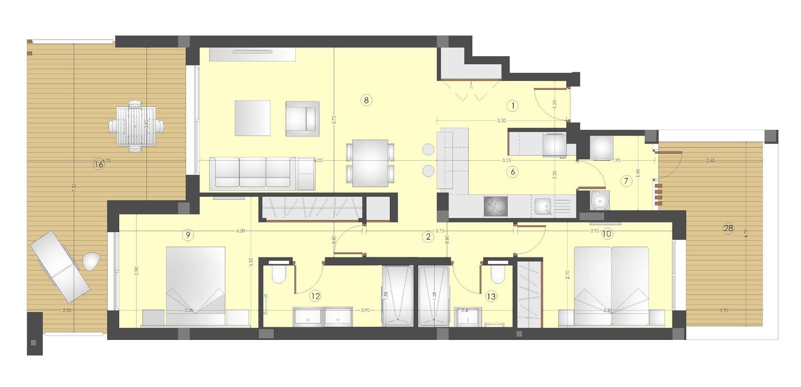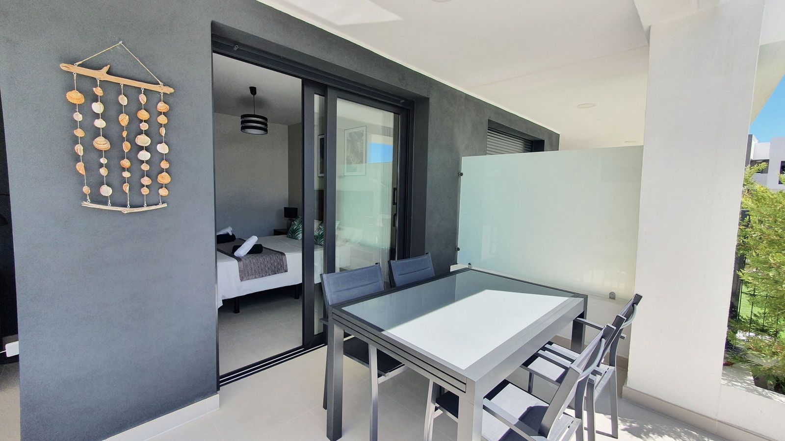 The private outdoor area is a true highlight, thoughtfully divided into three distinct zones for ultimate comfort and relaxation: