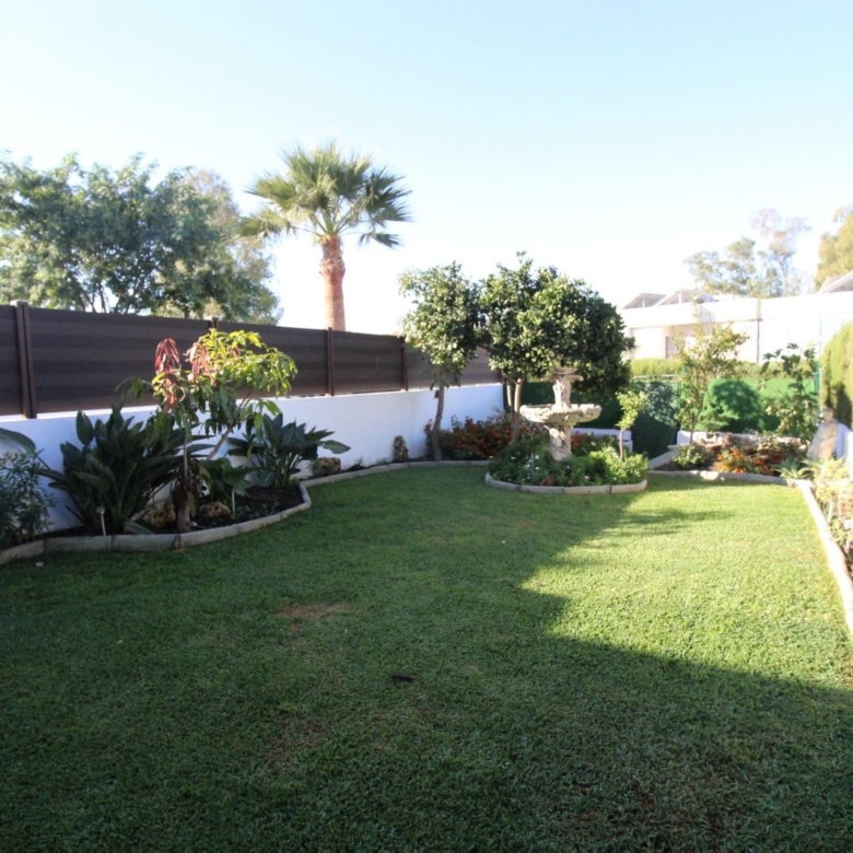 The property includes a parking space and storage room within a peaceful community with pool and gardens. A beautifully maintained home, ideal for year-round living or relaxing Mediterranean getaways.