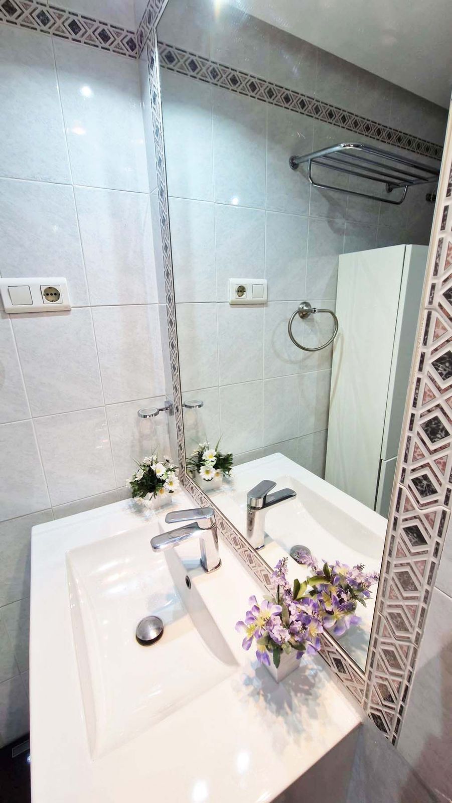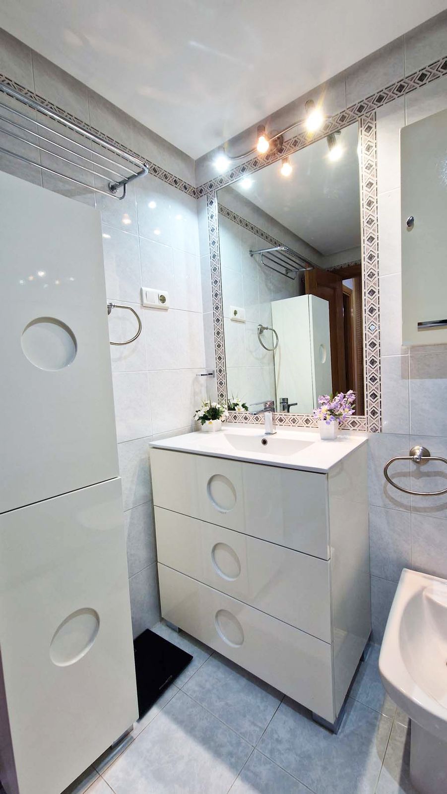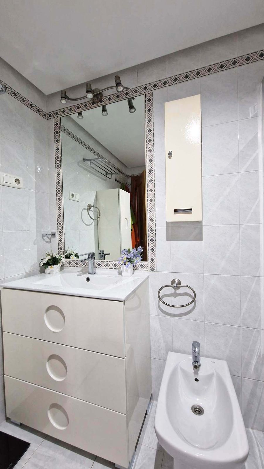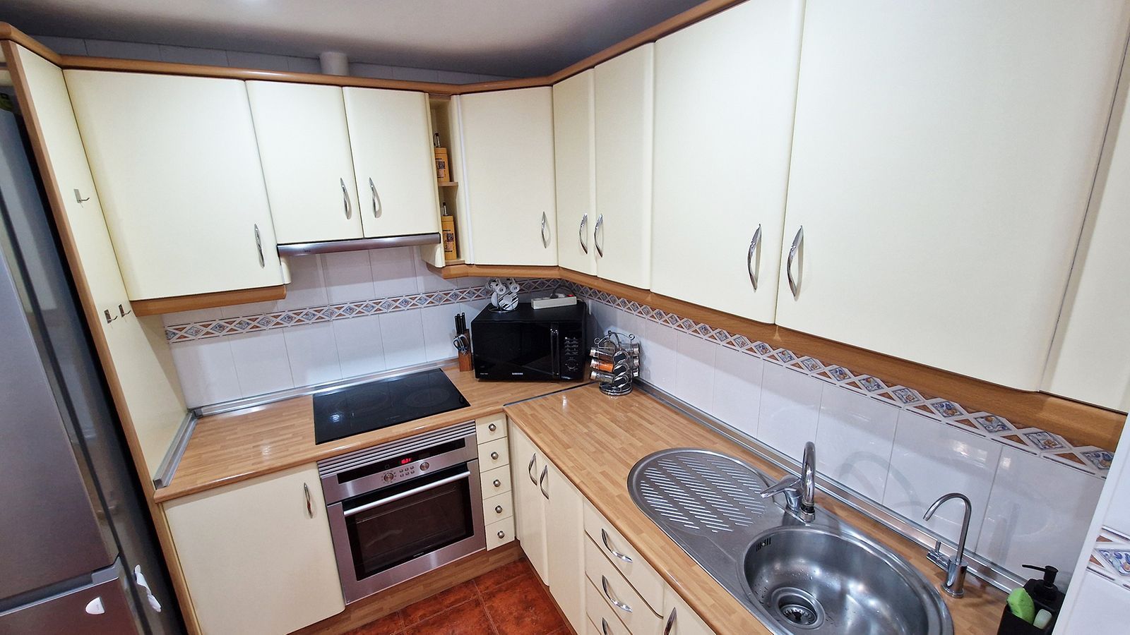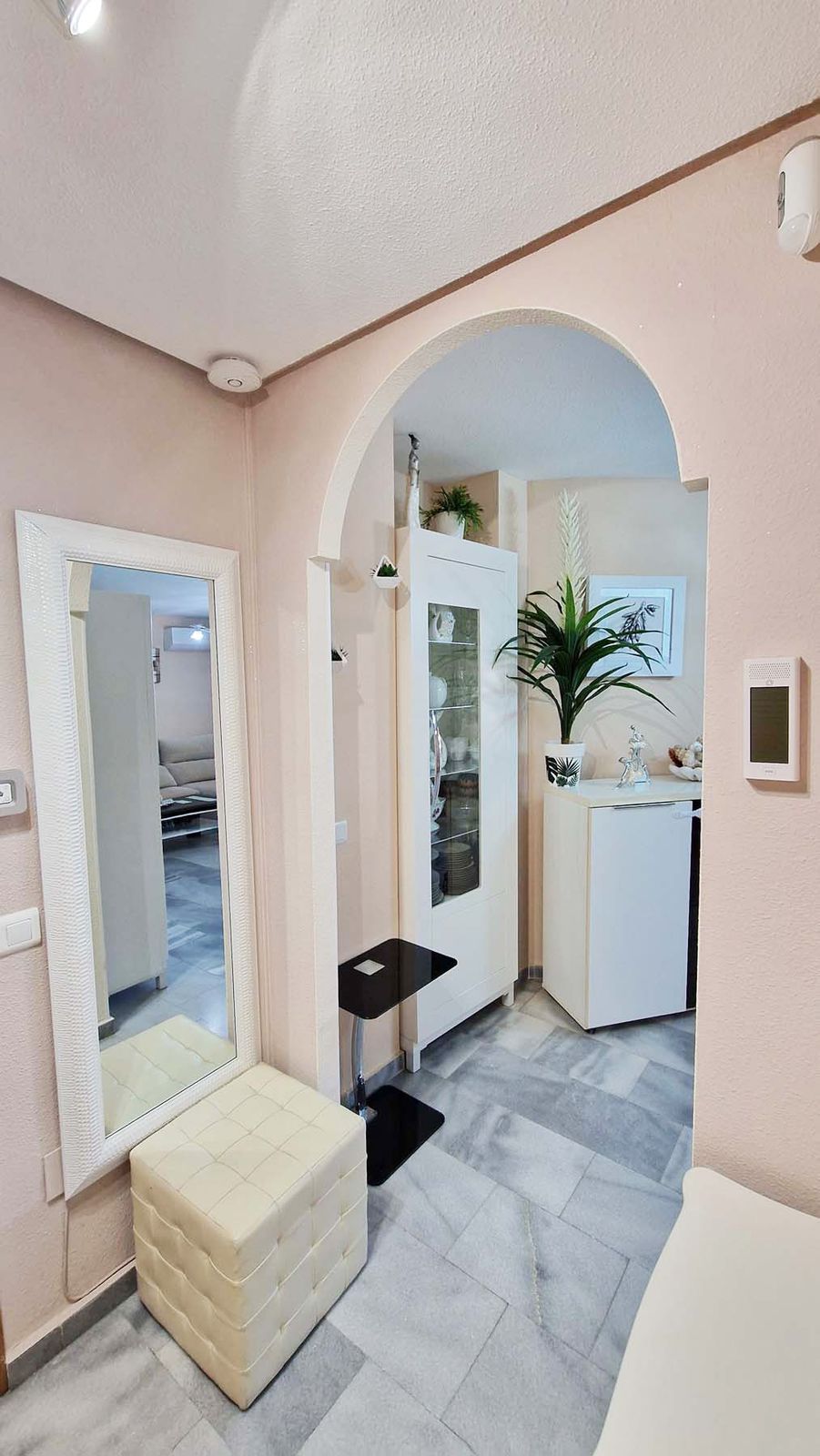 Two bedrooms with wardrobes and one bathroom – ideal for families or hosting guests. The private terrace can be closed off with glass curtains installed by the owners, along with electric blinds. Garage space is included in the price and has facility for charging electric cars.
