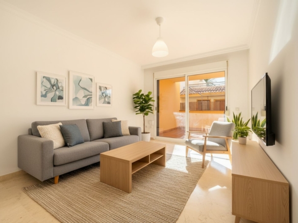 We offer to the market a spacious 2 bed apartment in a sought-after area in Benalmádena Costa. Only 5 minutes walk to the beach and near all important amenities, this apartment offers the opportunity to buy and reform an ideal home. The area, on Avenida de las Palmeras is popular with tourists and Spanish residents alike, who are attracted by the lively atmosphere and facilities available.