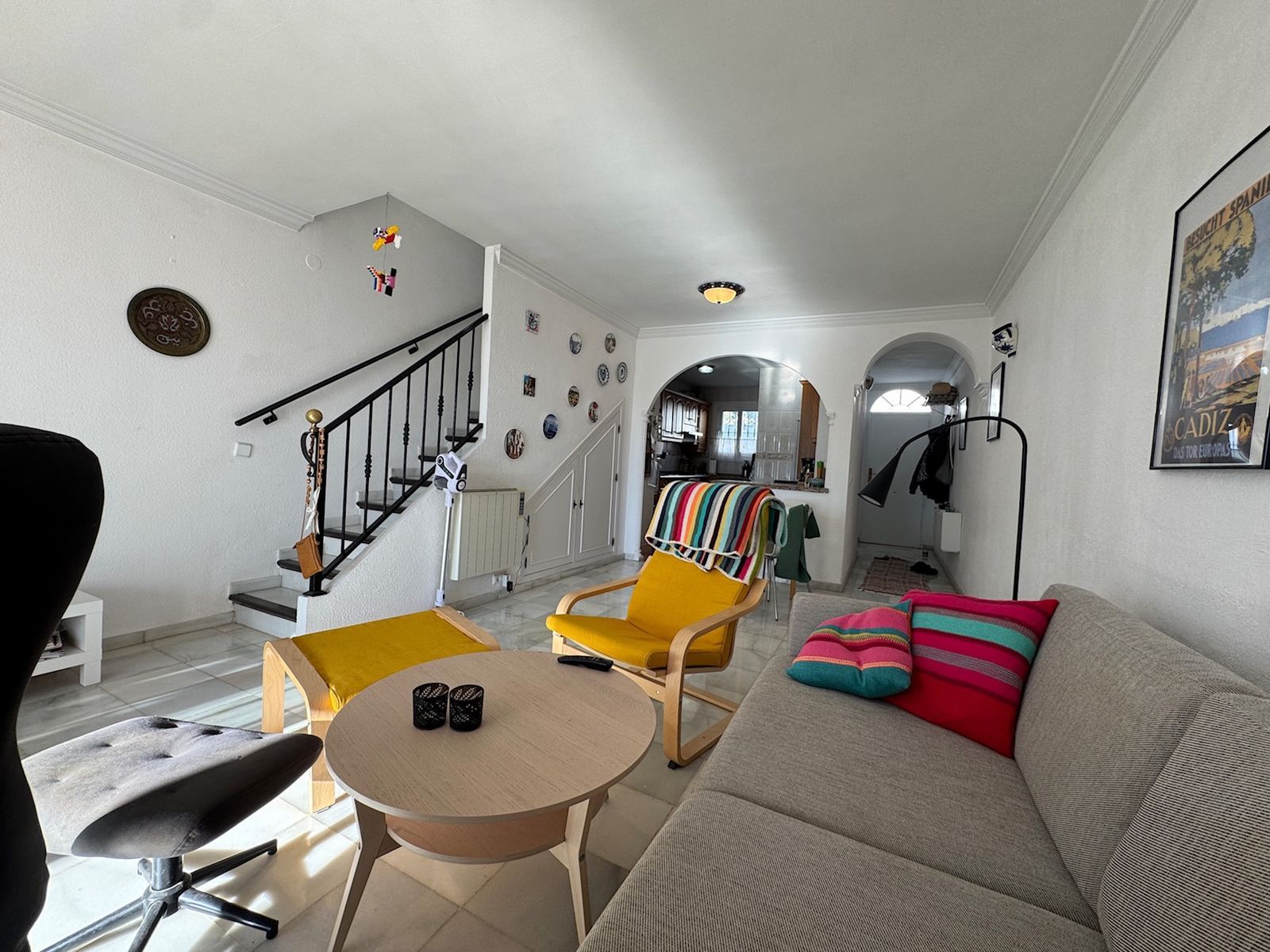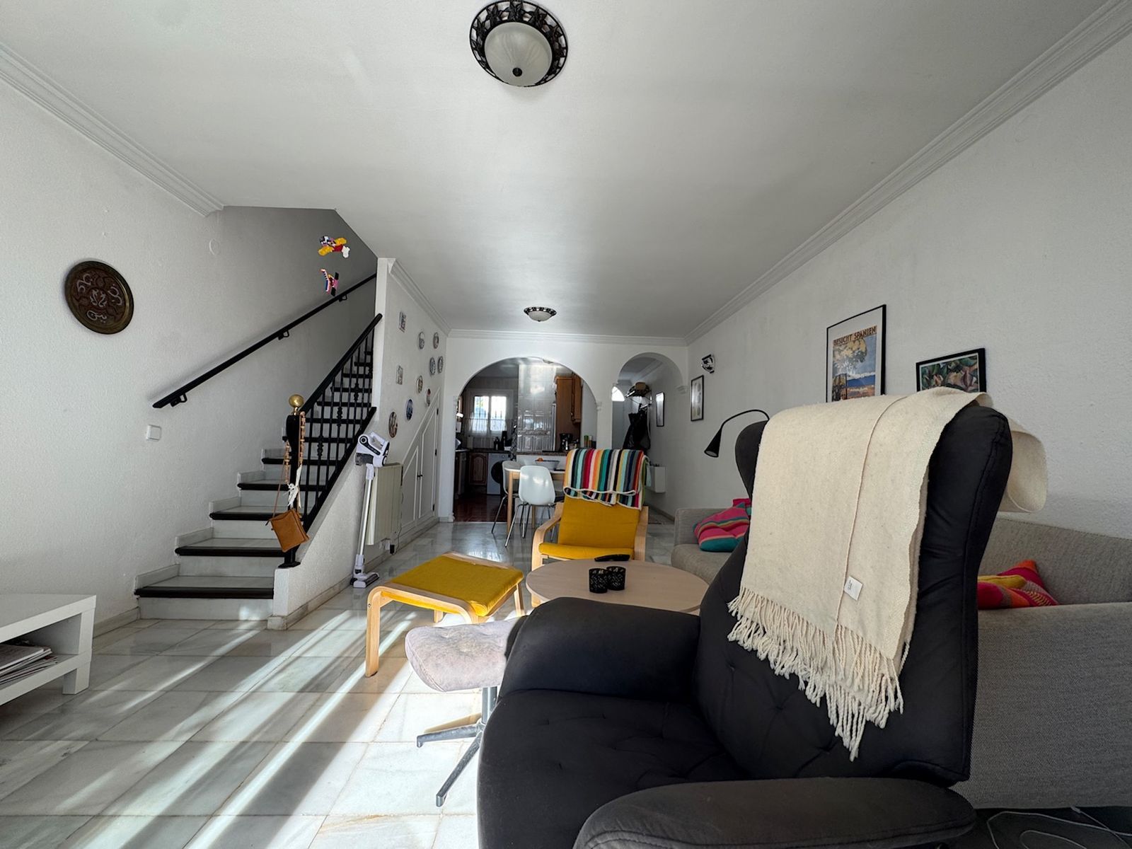 Location, location, location. This townhouse is located in a gated complex just on the edge of Benalmadena Pueblo (village). Within a short walk of super markets, restaurants, an amazing Danish bakery and of course the cosy village center and very efficient public transport available right on ones doorstep. The property itself is south south east facing and benefits from two sunny terraces and great sea views from the upper terrace. What we also like about this property is that although it is so central it still manages to have two swimming pools and the all important designated parking inside the complex for owners. Plus this property is sold with the furniture and the option to purchase the owner’s car that has driven under 30000km ask for more info. Benalmadena Pueblo is the original Benalmadena village nestled a short drive from the coast and just around 15 -20 minutes drive from Malaga Airport, the village of Mijas and also Fuengirola.