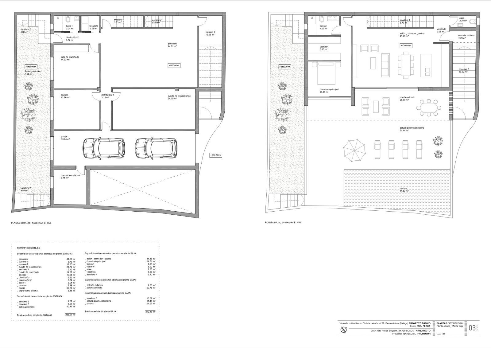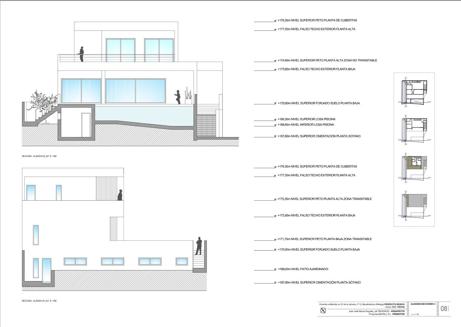 The project which is ready for the building license consists of a detached villa with private swimming pool and garage. It is developed to have basement, ground floor and first floor, with a garage for two vehicles and a swimming pool. It has been oriented so that the main views are directed to the points where there are no buildings, thus increasing the feeling of privacy.