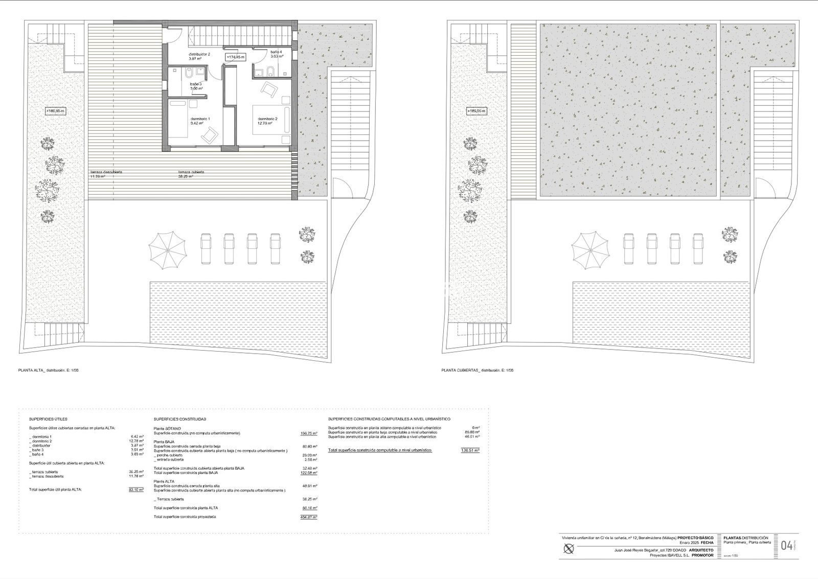 First floor with bedroom 1, bedroom 2, hall, bathroom 3, bathroom 4, covered terrace and open terrace. Total usable area first floor 83.10 m2. Closed constructed area on the first floor 46.91 m2