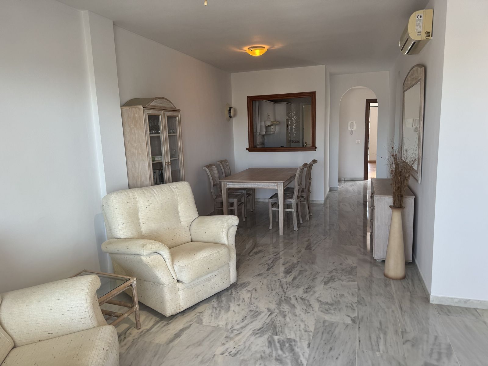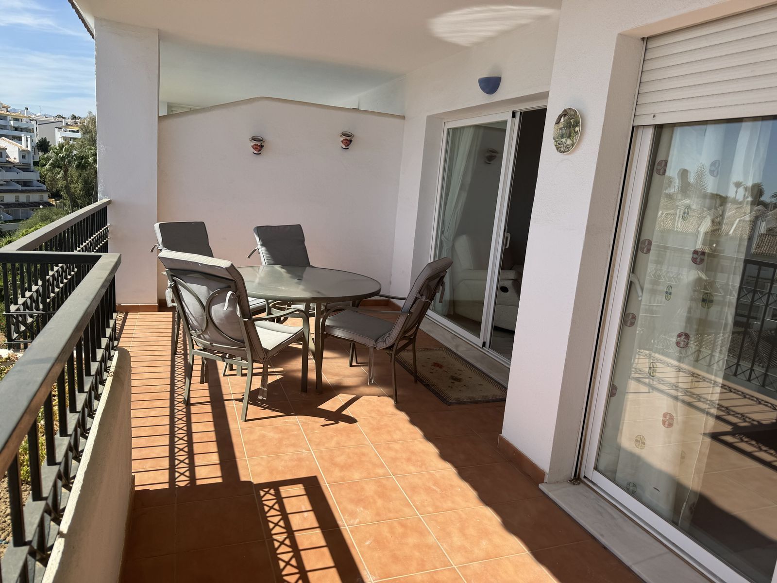 The interior presented well, but allows room for upgrading to your personal taste. The marble floor has just been polished and the walls painted.The master bedroom has an ensuite bathroom and for the second bedroom there is a guest shower room. THe big selling point of this apartment is the spacious, private terrace with open sea views that cannot be take away. It is perfect for entertaining or relaxing, with space for a large ding table and reclining furniture.