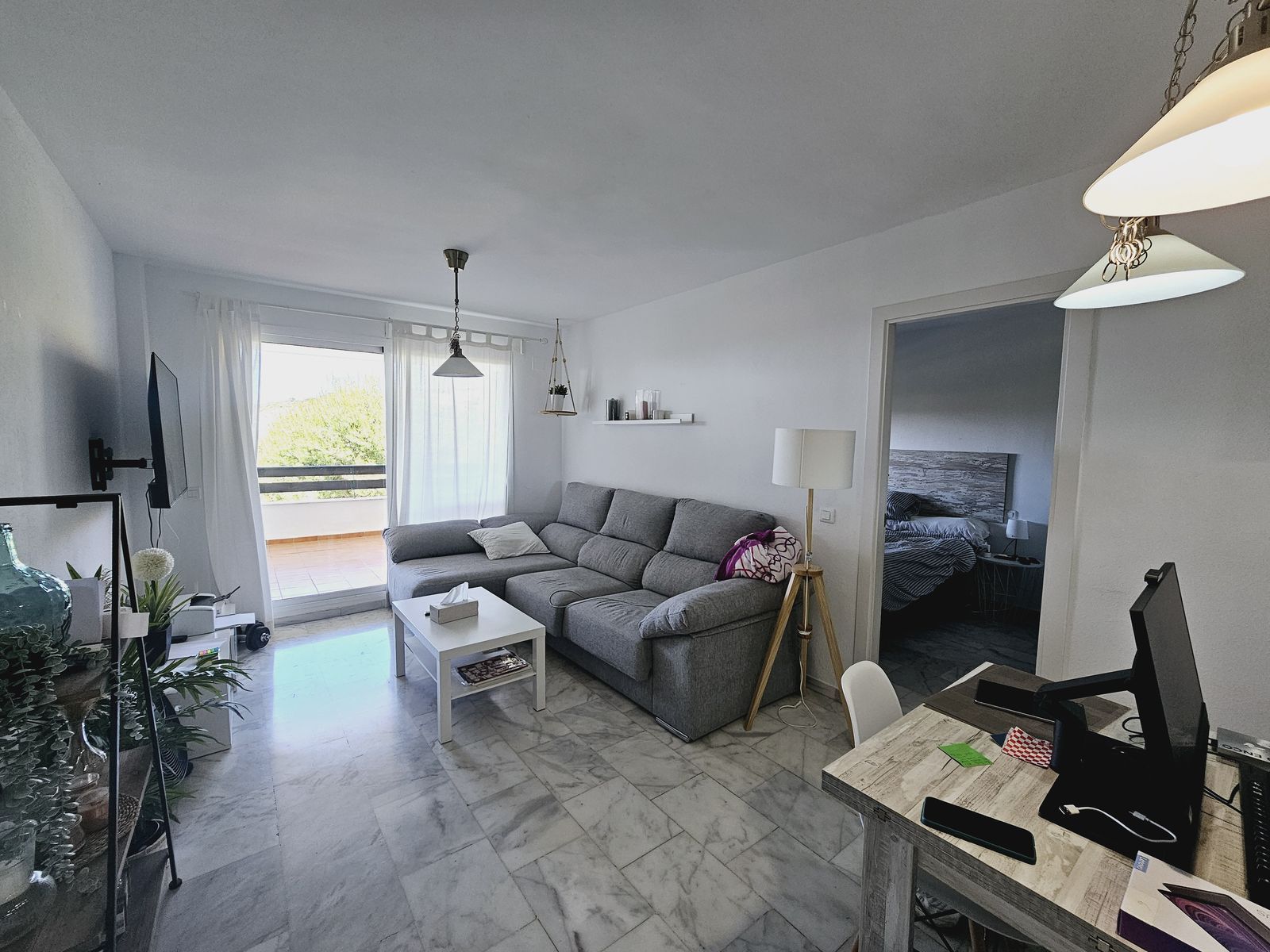 In short, this property offers a lot. Beautifully furnished, with a chic terrace with spectacular views over the coast and golf course, underground parking and storage room. An ideal place to live, in a community with well maintained tropical gardens and communal pool. Low running costs: Community fees:€70/month, IBI and Rubbish €430. All the blocks are currently being updated and painted white. THIS AN EXCELLENT INVESTMENT OPPORTUNITY. Viewing highly recommended.