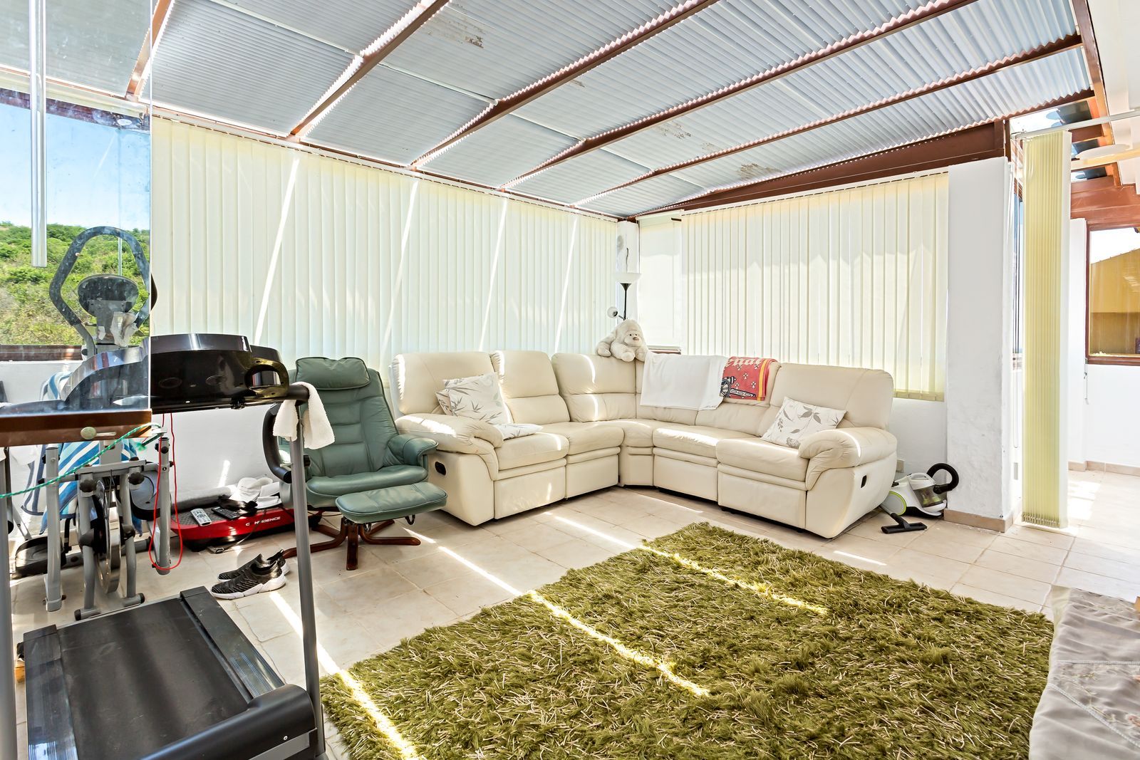 The living room is spacious and bright and has access to the terrace space. Here we find a very large glazed terrace for all-year-round use and stunning panoramic views. There is also an uncovered area ideal for sunbathing.