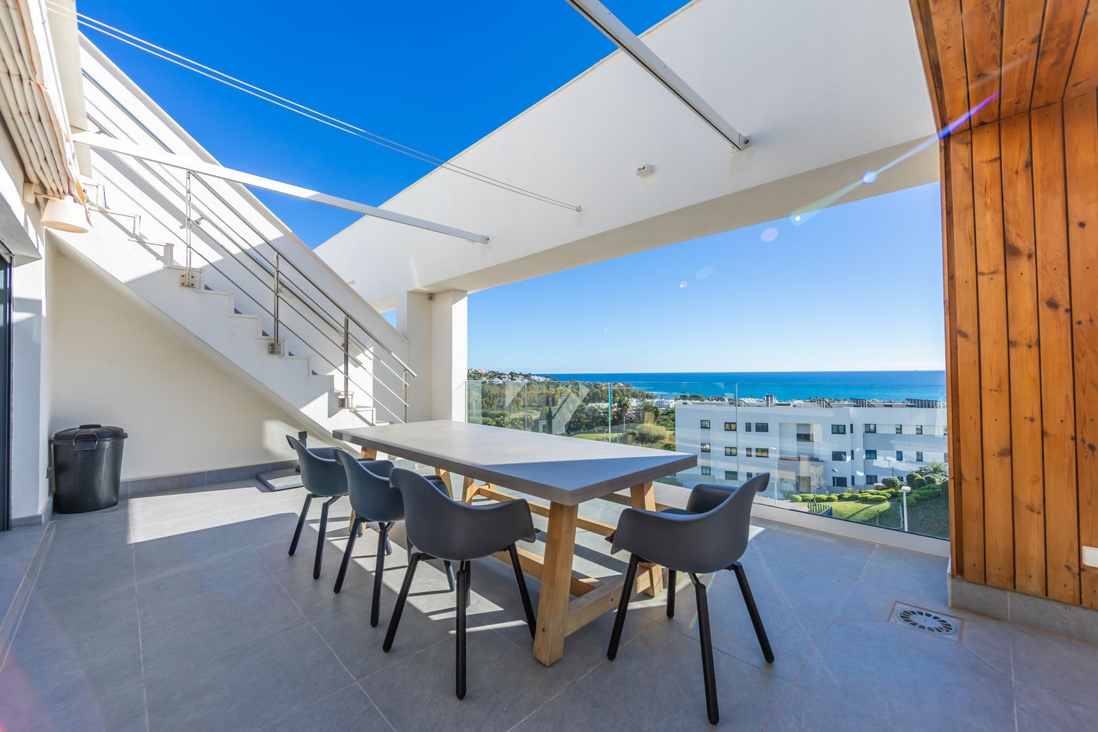 Magnificent penthouse with a large terrace and southeast-facing solarium, enjoying wonderful views of the sea and the golf course. Located in a beautiful residential complex, it sits in one of the most sought-after areas, surrounded by prestigious golf courses, in a peaceful setting away from noise. Just a 5-minute drive away, you’ll find the attractive beaches of Casares Costa, the charming village of Sabinillas, and the lively Puerto de la Duquesa, where you can enjoy all kinds of shops, restaurants, and leisure options.The property features an elevator from the garage and a communal swimming pool. It also includes an underground parking space and a storage room. An excellent opportunity not to be missed.