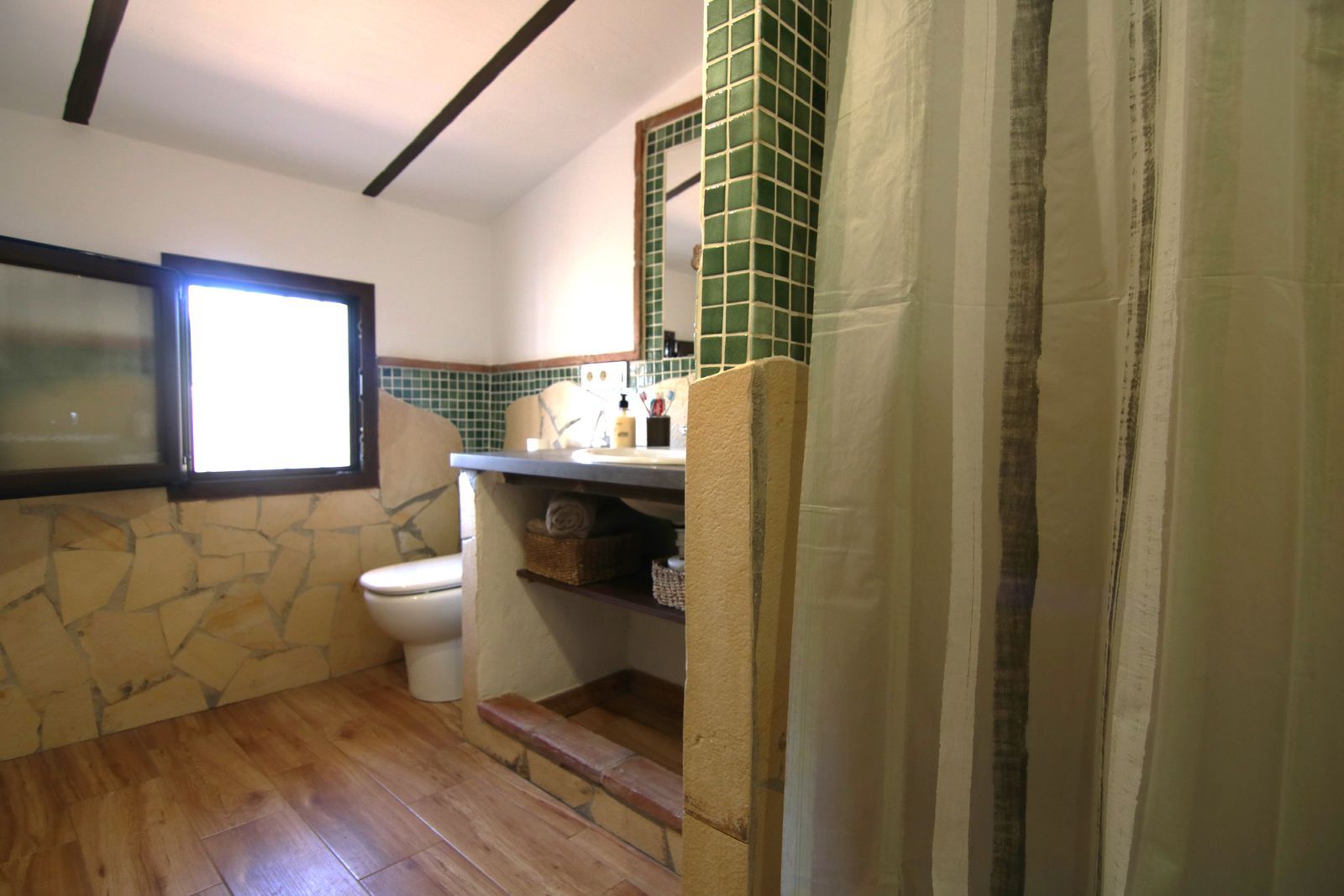 This house is divided into two floors, on the second floor we find a spacious and bright living room with fully equipped kitchen, toilet and a double bedroom.