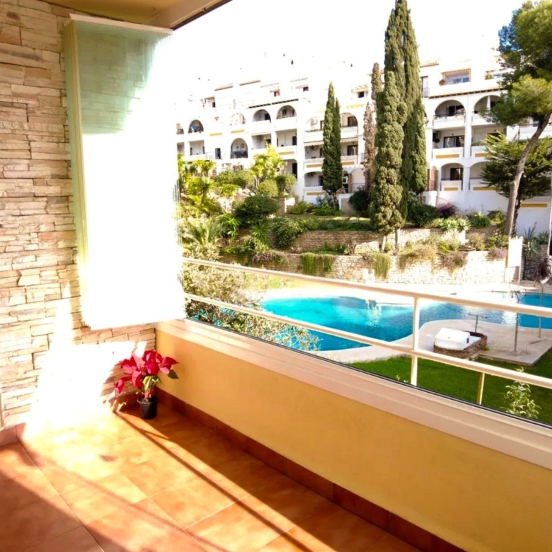 The community gardens are well maintained and create a pleasant, green outlook with well established mediterranean plants and trees. There is a communal pool behind secure gates with a grassed area. The community is gated and secure and in addition there is an allocated parking space outside and not under cover.
