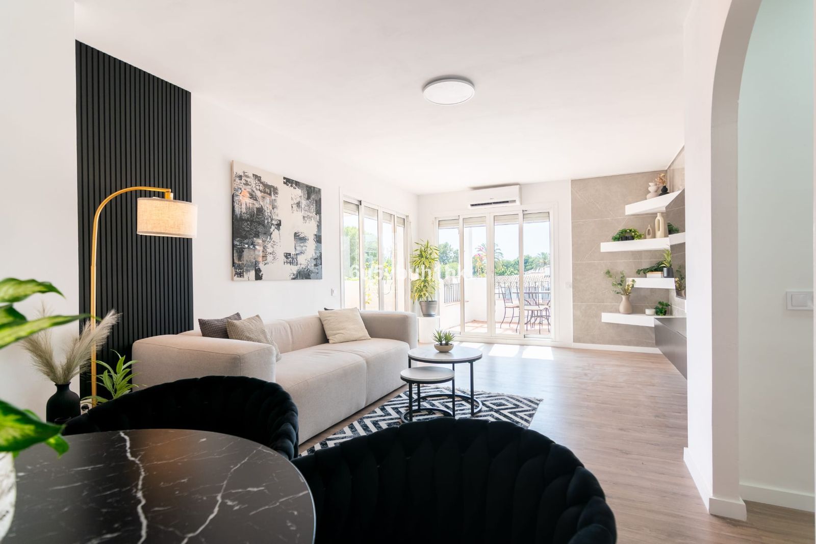 El Paraiso – Just steps behind the chic D-Alicia Café and only 300 m from serene, almost-private beaches, this avant-garde three-bedroom, two-bathroom penthouse embodies modern Mediterranean sophistication. Encompassing approximately 155 m², it showcases bold, gallery-style interiors where striking black-and-white contrasts, wood floors, and abundant natural light create an ever-changing exhibition of style. A sleek black-granite kitchen flows seamlessly into an open living-dining area designed for chic entertaining, while two spa-inspired baths—one featuring a deep soaking tub—offer indulgent comfort. Crowned by a private Saltillo-tiled rooftop terrace, the residence invites sunset dinners, starlit gatherings, and effortless al-fresco living. Surrounded by acclaimed restaurants, wine bars, and designer boutiques, this penthouse is more than a home: it’s a curated lifestyle for the sophisticated buyer seeking elegance, edge, and everyday inspiration.