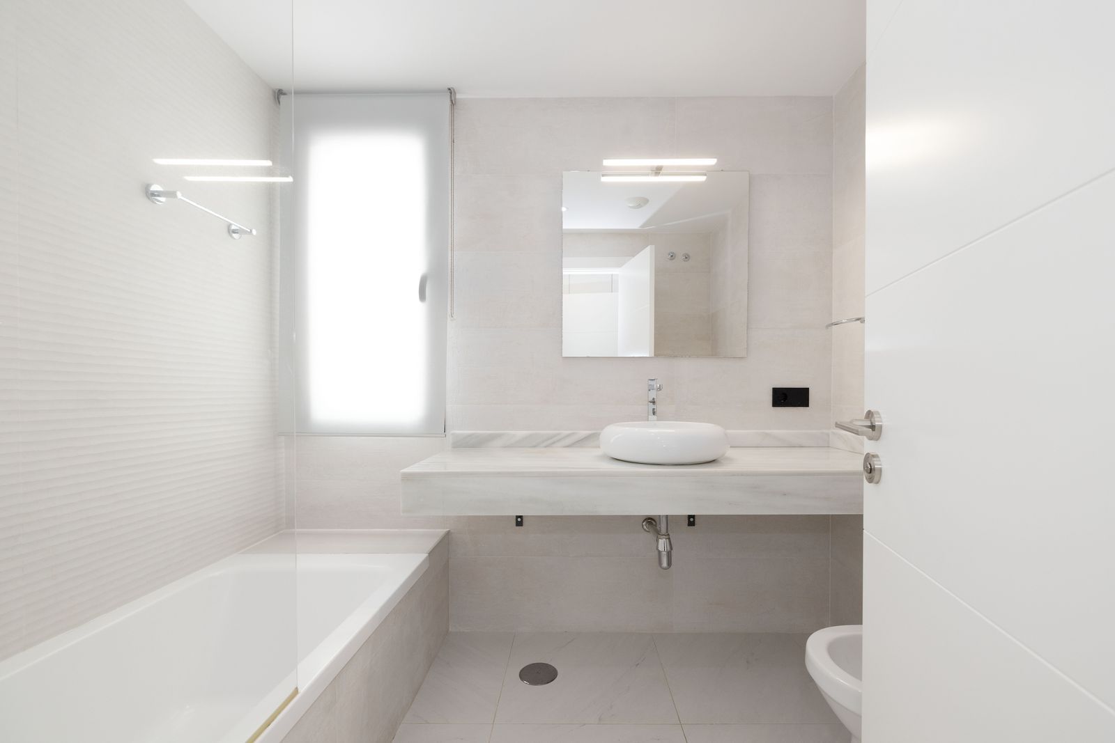 The finishes stand out for their quality and elegance: large-format porcelain floors, a fully equipped kitchen with high-end appliances and Solid Surface countertops, and designer bathrooms with walk-in showers, integrated washbasins and backlit mirrors.