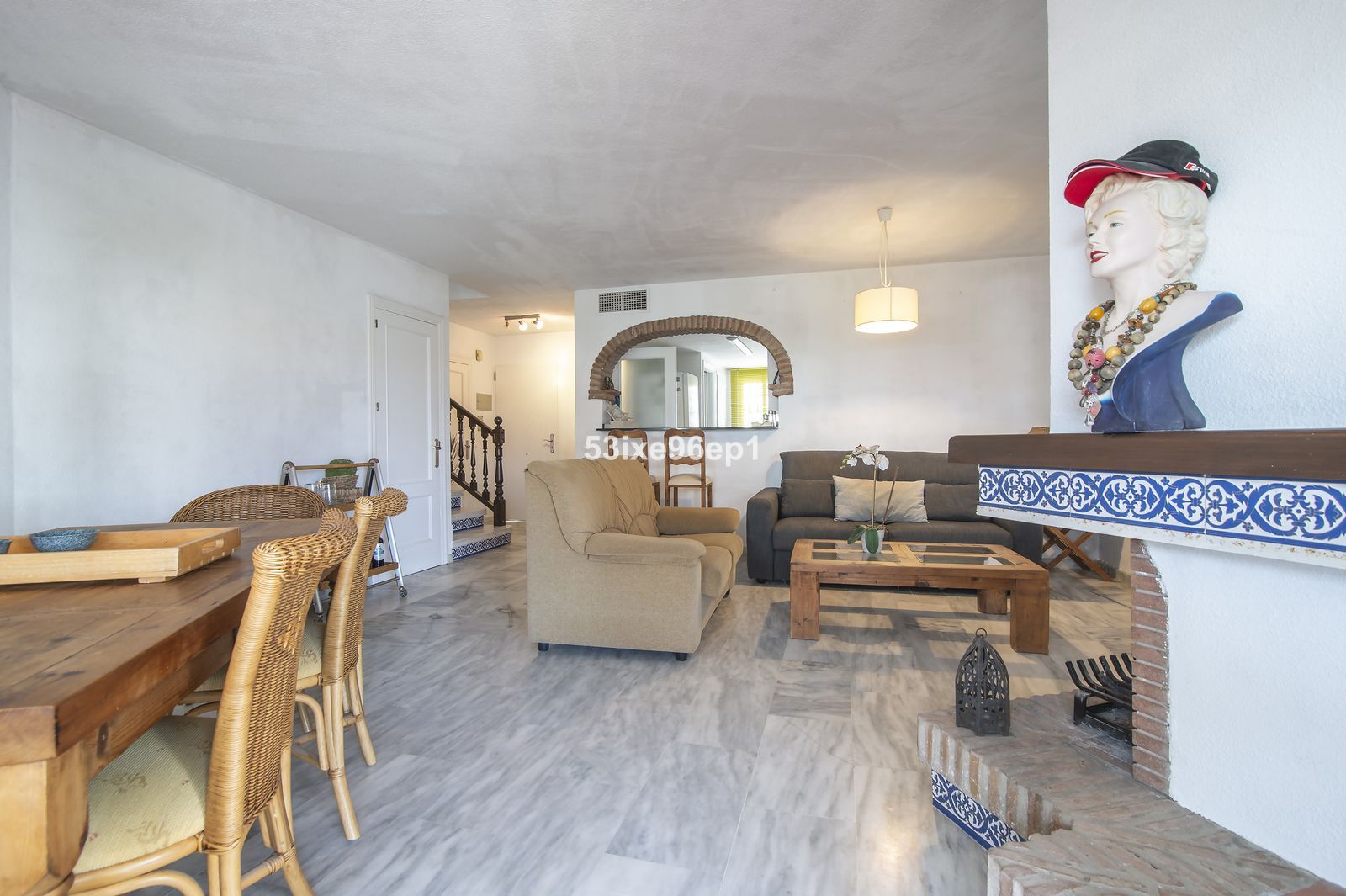 Charming beachside house for sale just 50 meters from the sea, located in the peaceful and well-connected area of Arroyo Vaquero, Estepona. This Mediterranean-style property offers an excellent opportunity for those looking for a coastal home with a private garden, generous indoor and outdoor spaces, and a flexible layout, all within a secure and characterful Andalusian community.