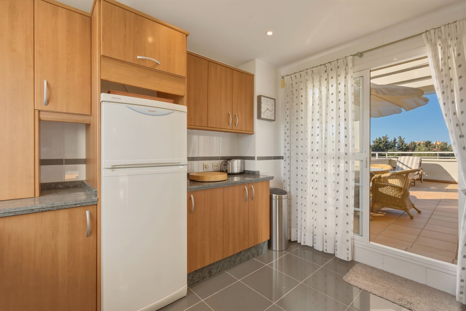 Exclusive corner penthouse in Dunas Green with a total of 175 m² of terraces. The main terrace faces southwest, enjoying morning sun thanks to the corner position and sun for most of the day, while the rooftop terrace gets sun all day. The property features 3 bedrooms, 2 bathrooms, and 1 guest toilet. Two covered parking spaces located next to each other. Well maintained and sold furnished. The community offers a beautiful pool, two padel courts, and spacious, well kept green areas, especially around the pool. Just a 15 minute walk to the sea.