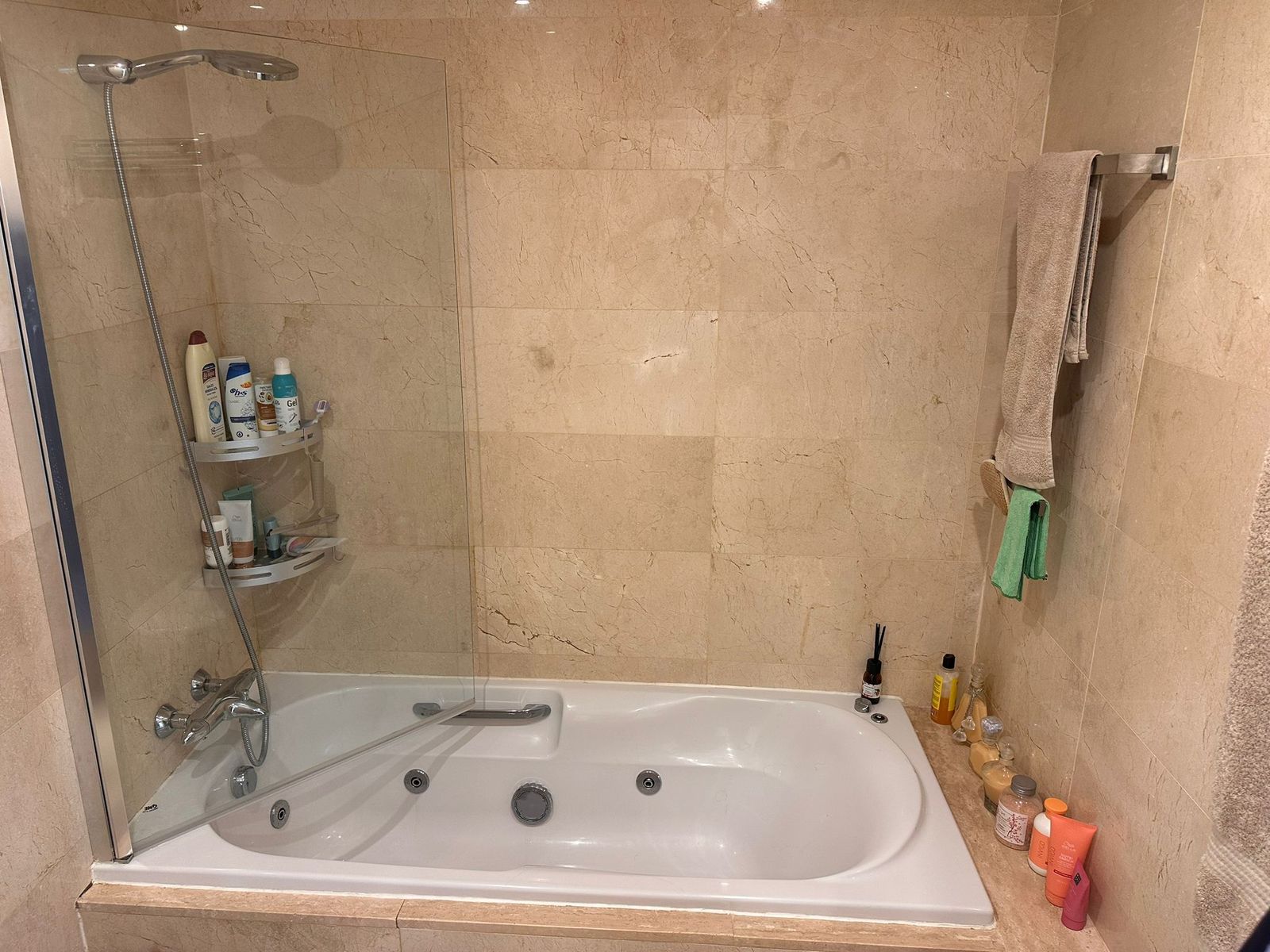 creme marble floors, marble bathrooms, double glazing, electric sun blinds, aircondition hot/cold, elevator, garage and storage room,