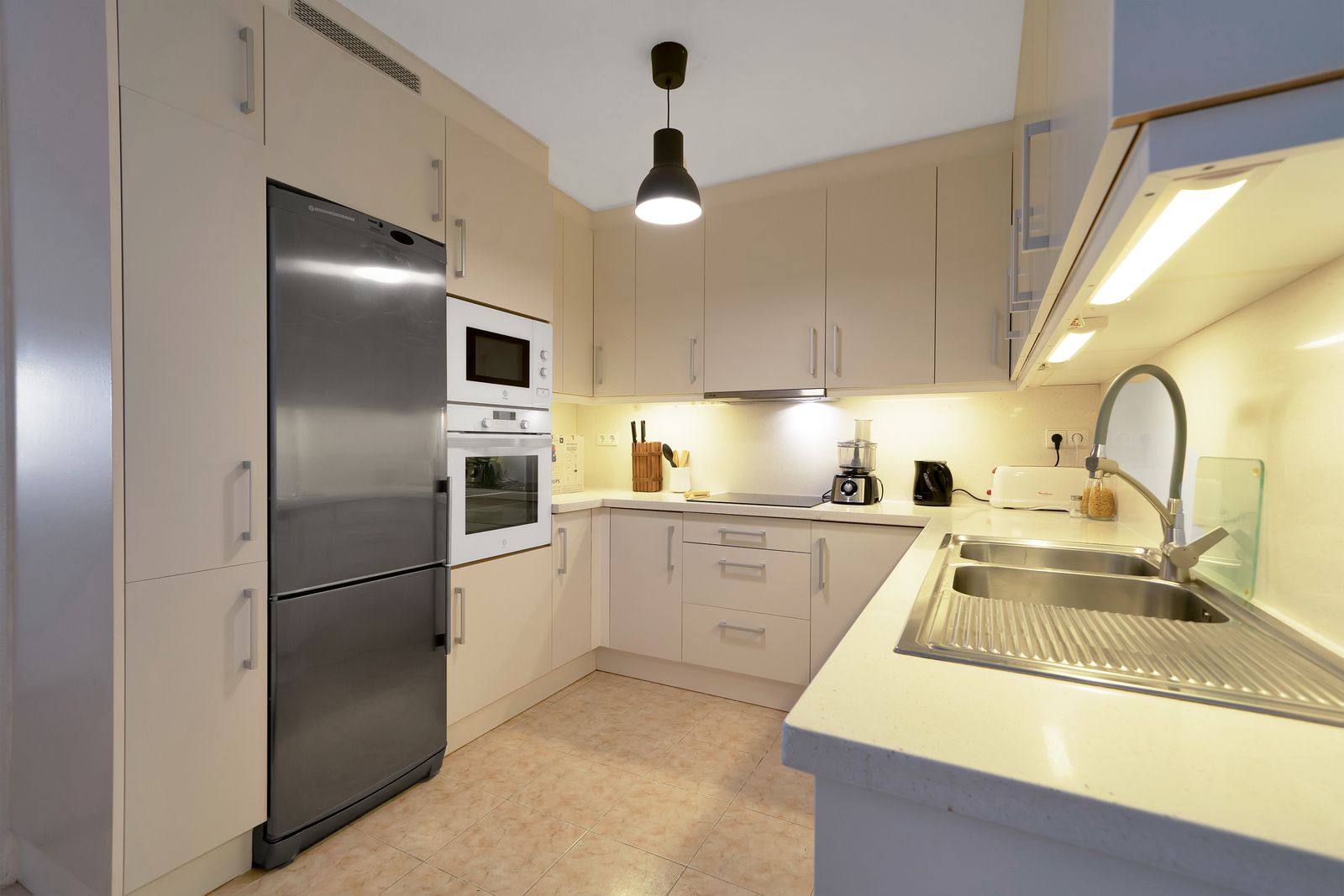 •Fully furnished open-plan kitchen with adjacent dining area