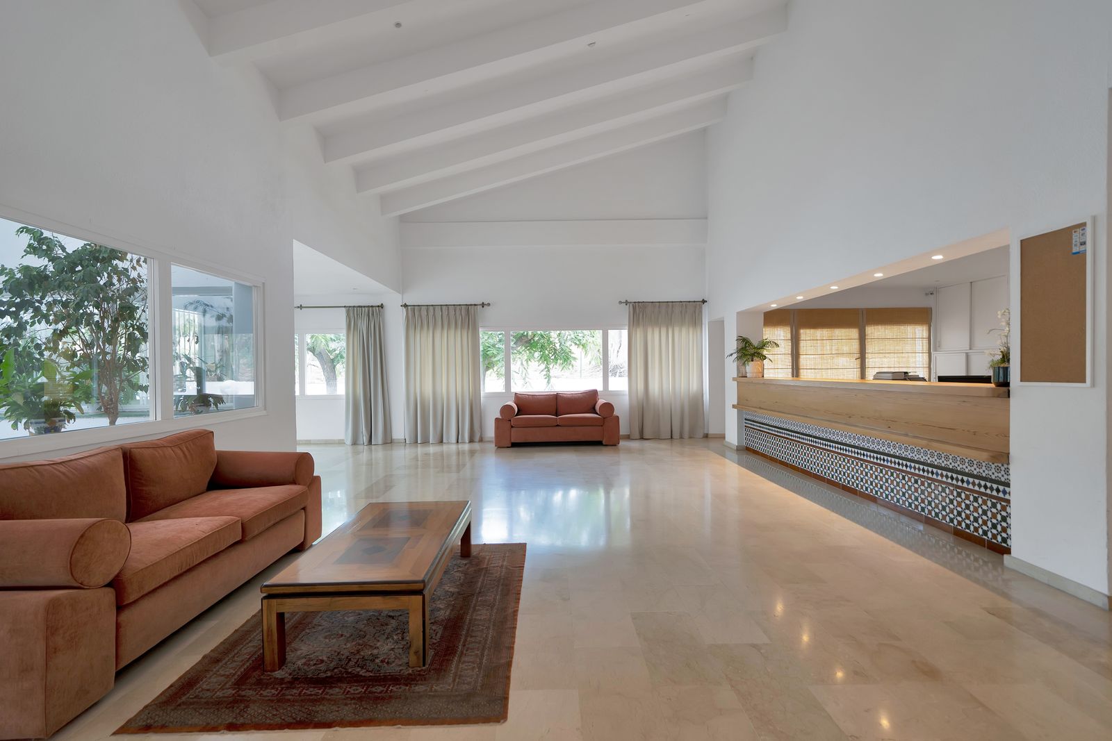 •Spacious, light-filled living room opening onto a large, covered terrace
