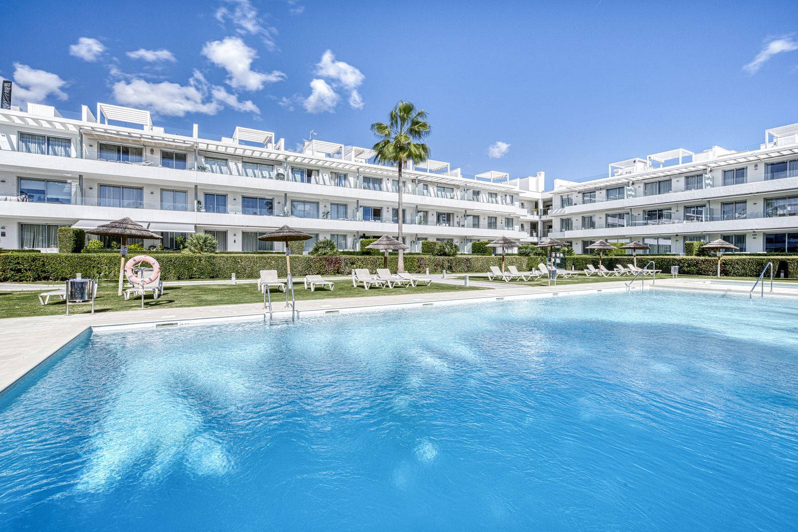 Immaculate unit in a superb location, walking distance to the wonderful beaches of Costalita (15 mn) and to a commercial area (5mn) with everything you need: supermarkets, restaurants, cafés, pharmacy, bank… No need for a vehicle. The location of the urbanisation is highly desired, in calm and trendy Bel Air, right between Marbella and Puerto Banus (15mn) and central Estepona (10mn). As you enter, you will find a large living room and open plan kitchen, fully equipped with german appliances. It leads to a fabulous 38m2 west oriented terrace, facing a recently created green area, so you are assured that nothing will ever be built and that the fantastic views will remain. Enjoy a large, cool terrace year-round, and soft natural light (floor-to-ceiling height is huge for a first floor). Moreover, the calm that results from this promises lovely evenings overlooking the sunset. The rest of the property includes three spacious bedrooms with plenty of wardrobe space, all leading to the terrace. Bright throughout, thanks to the floor-to-ceiling ample windows. The master is huge, with en suite bathroom. There is a second full bathroom with italian shower. The urbanisation is state of the art and in great condition, it includes a garden area and large swimming pool. There is an underground parking space and a storage room, included in the price. Great opportunity, easy viewings, a must see!