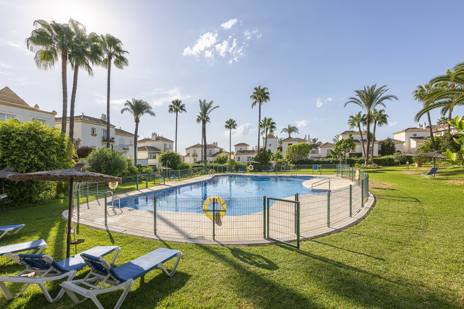 This stunning semi-detached villa is located in a traditional Andalusian development on the New Golden Mile. It is ideally located a short drive from Puerto Banús, with the beach just a short walk away.