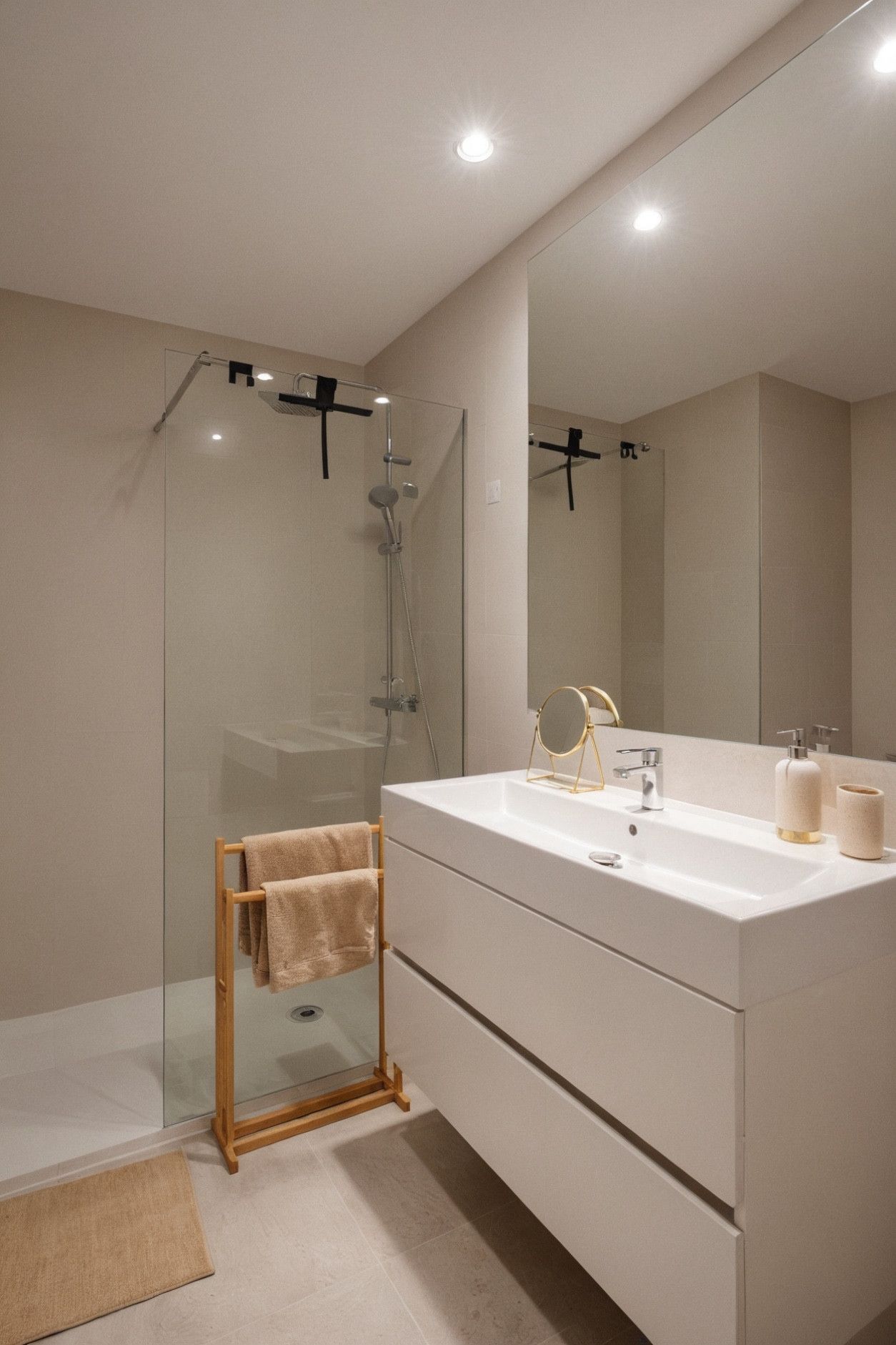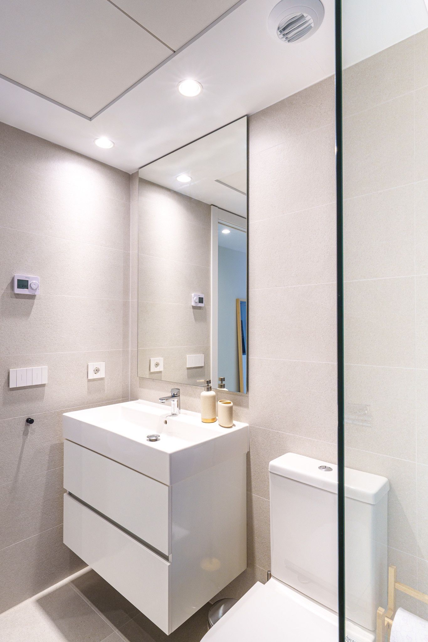 The apartment features two generously sized bedrooms, both filled with natural light and decorated in soothing neutral tones which provides direct access to a private terrace, offering the perfect spot to enjoy your morning coffee or unwind in the evening. The two bathrooms are beautifully designed with contemporary fixtures with underfloor heating