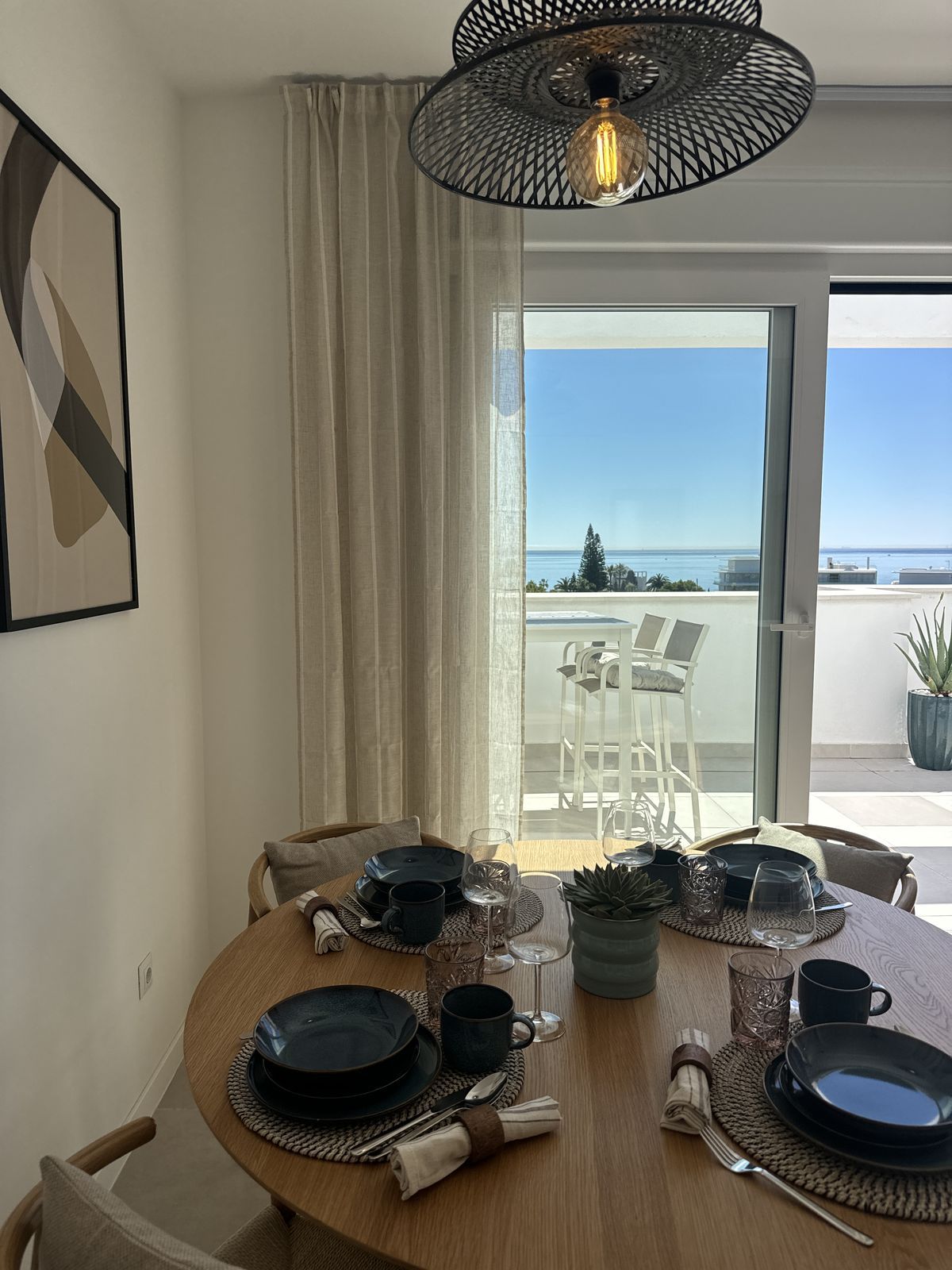 This TOP FLOOR penthouse is located in a newly build development Celere Sea View in Estepona (Malaga), located in a newly developing built-up area, only 5 minutes from the town centre and the Estepona Marina. This location offers many leisure and service opportunities. Right next to the development you will find your daily supermarkets, as well as restaurants, school, sport center, the Estepona High Resolution Hospital all surrounded by several golf courses within a 5km radius, including Doña Julia Golf, Finca Cortesín Golf Club, Estepona Golf and Valle Romano Golf. This area is developing rapidly and has the potential to increase prices.