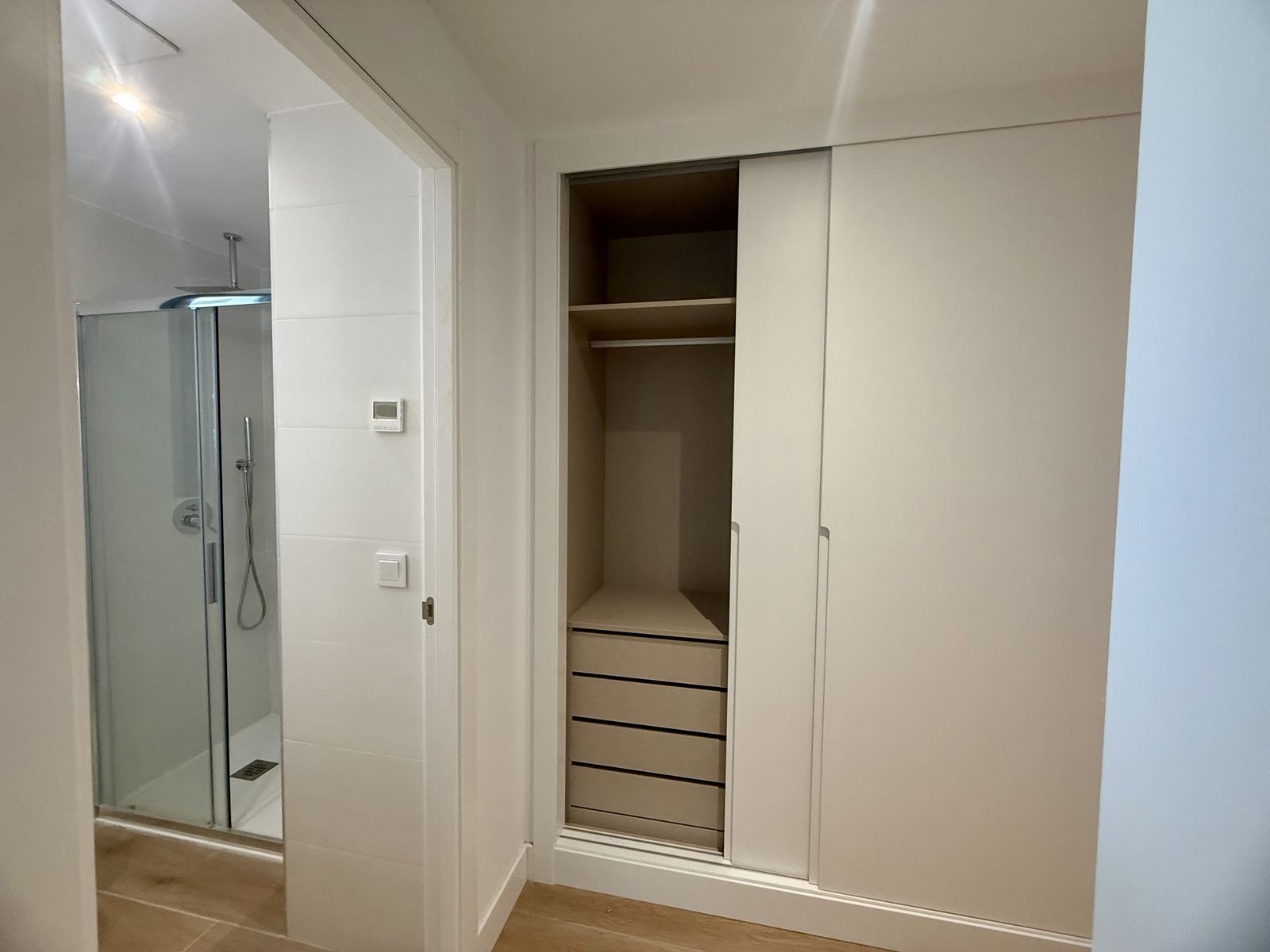 Fully fitted kitchen with high-end appliances, underfloor heating in both bathrooms, built-in wardrobes, two private parking spaces and a storage room.