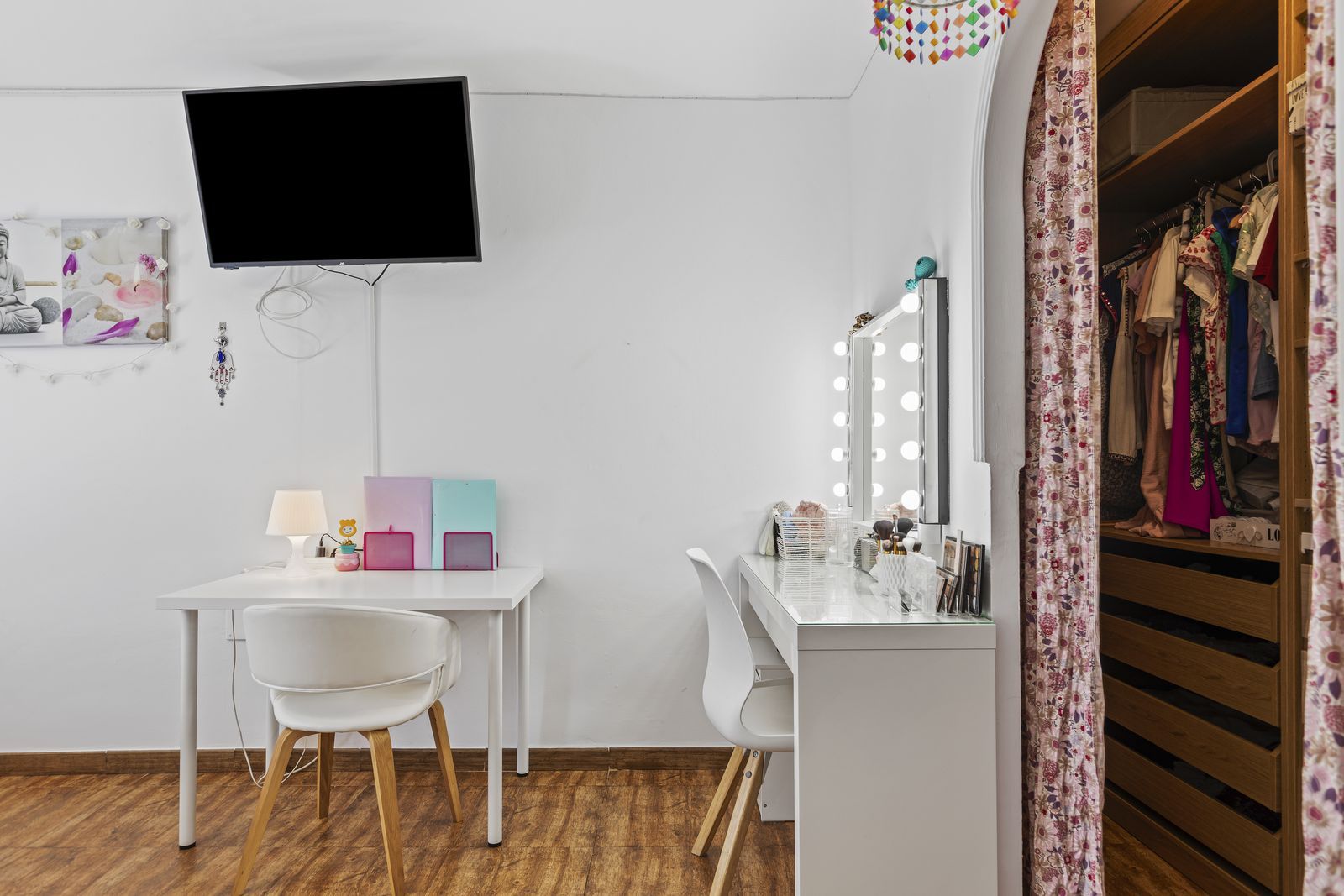 Inside, a bright receiver welcomes a warm atmosphere. The old garage has been transformed into an independent studio with its own entrance from the front terrace, perfect as a guest apartment, work space or even to rent as a holiday accommodation.