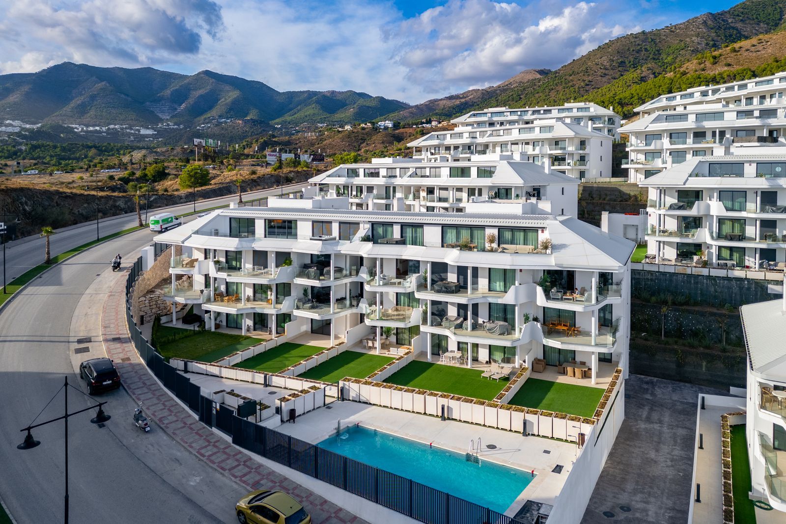 Elegant south facing apartment, in an exclusive urbanization in El Higuerón area, with 3 bedrooms, 2 bathrooms, spacious living-dining room, open plan kitchen fully furnished and equipped with electrical appliances, spacious terrace of 25m2 with urban and partial sea views.