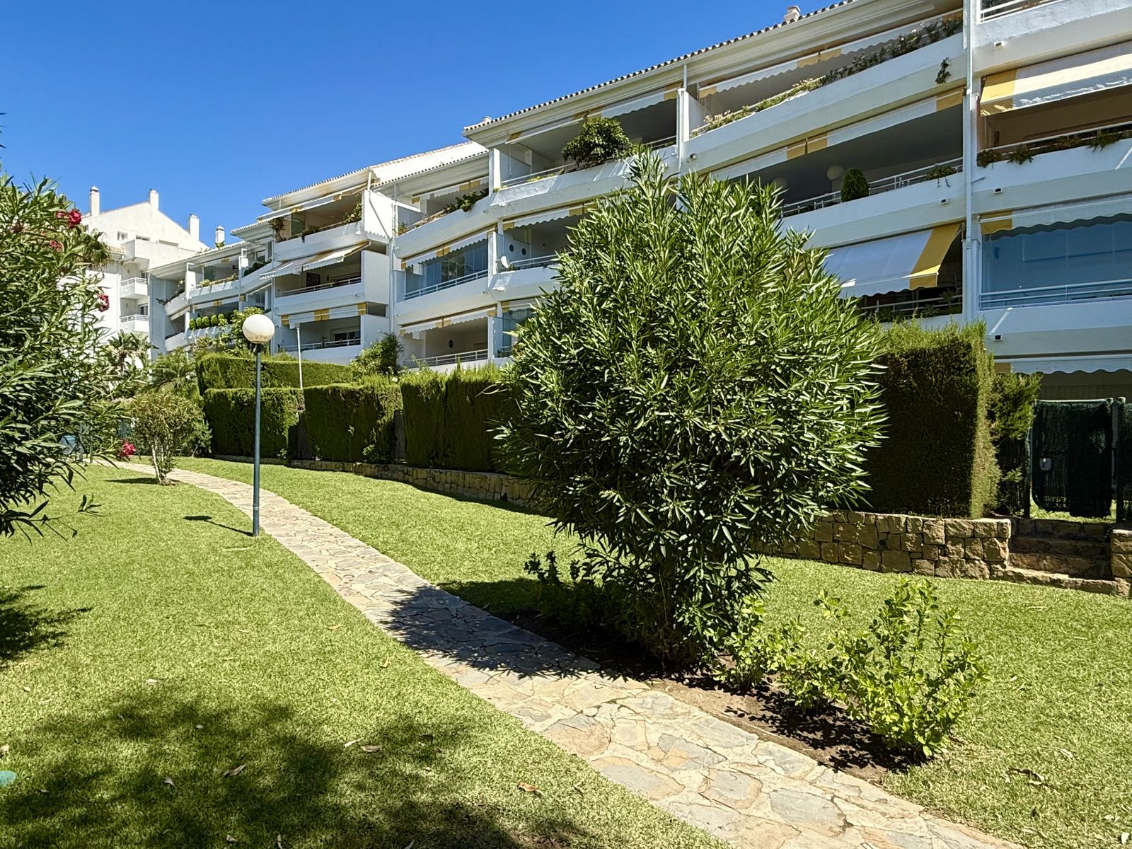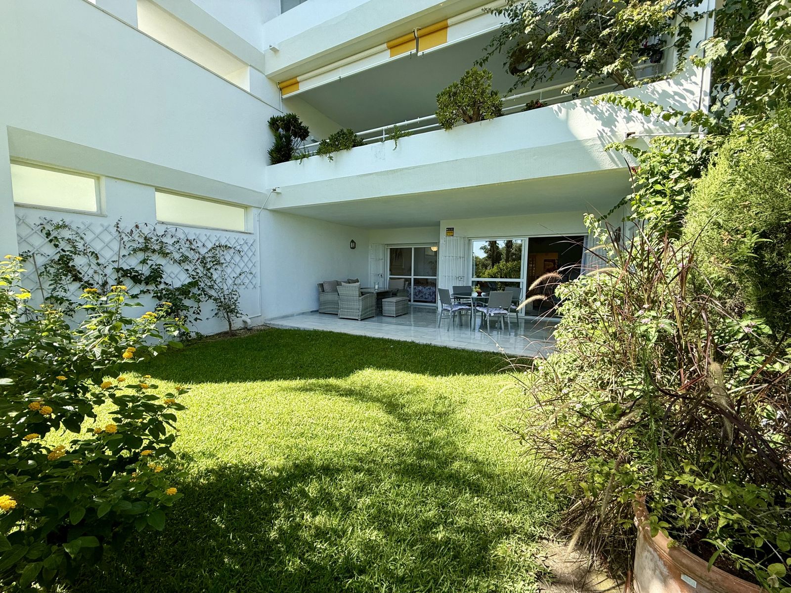 Beautiful ground floor apartment enjoying all morning sun due to its East orientation. Private garden apartment front line golf in Guadalmina Baja. Hoyo 15 is a gated complex with 24h security guards also with cameras throughout the communal areas.There are two communal pools in its beautiful gardens. Only a few minute walk to the beach where we find the Guadalmina beach Club, and several very well known restaurants. The apartment is sold in immaculate conditions. The large living/dinning room is very bright and access to a great covered terrace and garden. Both bedrooms are of good size each with full bathrooms. Including garage and storage. Fully furnished, Must be seen!!!