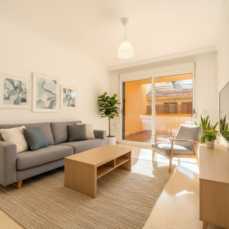 Located in the exclusive Duquesa Village development, this beautiful apartment offers a perfect combination of comfort, tranquility, and spectacular sea views. Located just minutes from the beach, golf courses, and all amenities, it boasts excellent connections to the highway, making it an ideal location for both living and investing. The 115 m² home, in perfect condition, stands out for its brightness and south-facing orientation, providing morning sun and a feeling of spaciousness. Although listed as a first floor, its actual height is equivalent to a third floor, ensuring privacy and unobstructed views. It features two double bedrooms, two full bathrooms, a spacious living-dining room with direct access to a covered terrace with open views, a fully equipped kitchen, and a separate laundry room. It includes an underground parking space, a storage room, and a valid tourist license, perfect for vacation rentals. The development offers 24-hour security, five communal pools surrounded by gardens, a paddle tennis court, and is pet-friendly, all in a well-maintained and privileged setting.