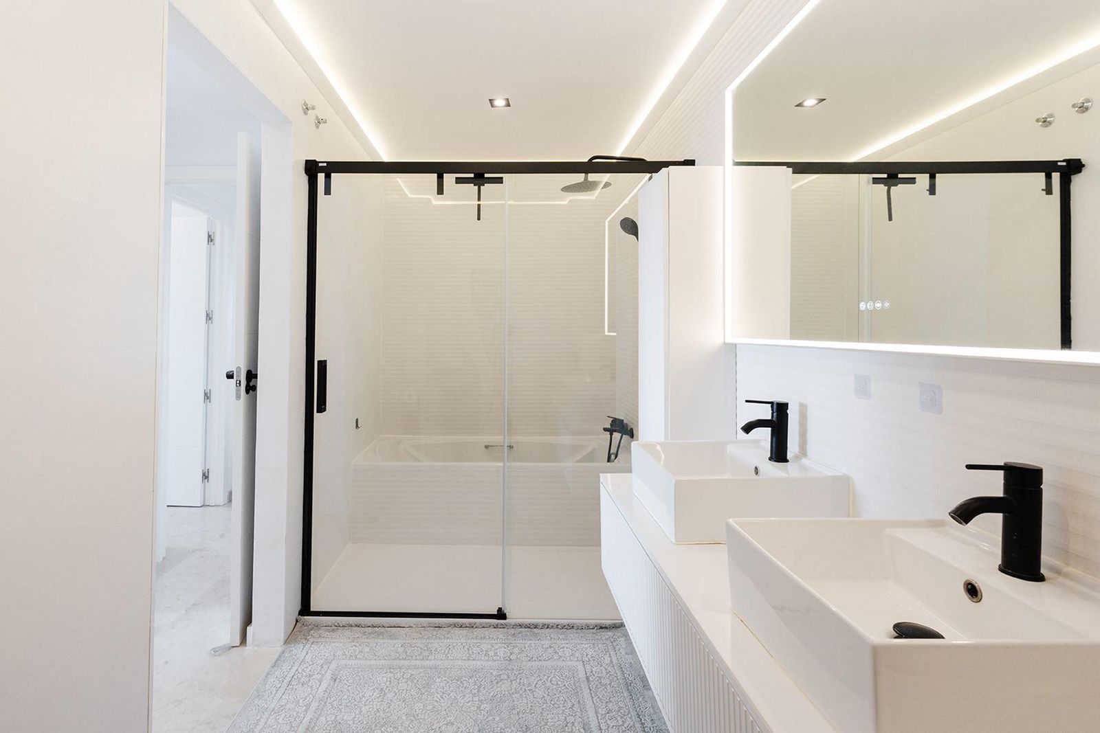 This spectacular renovated house, with its elegant contemporary style, offers a total of three bedrooms with three bathrooms, plus an office area, and a large living room of over 50m2 with an integrated kitchen.