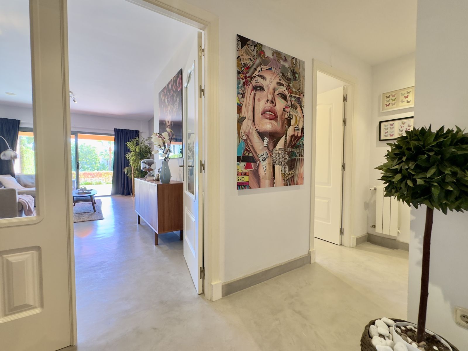 One of the apartment’s standout features is its private garden, offering both tranquility and seclusion. This lush outdoor space provides a perfect setting to relax, dine, or entertain while enjoying complete privacy and the natural beauty of the surroundings.