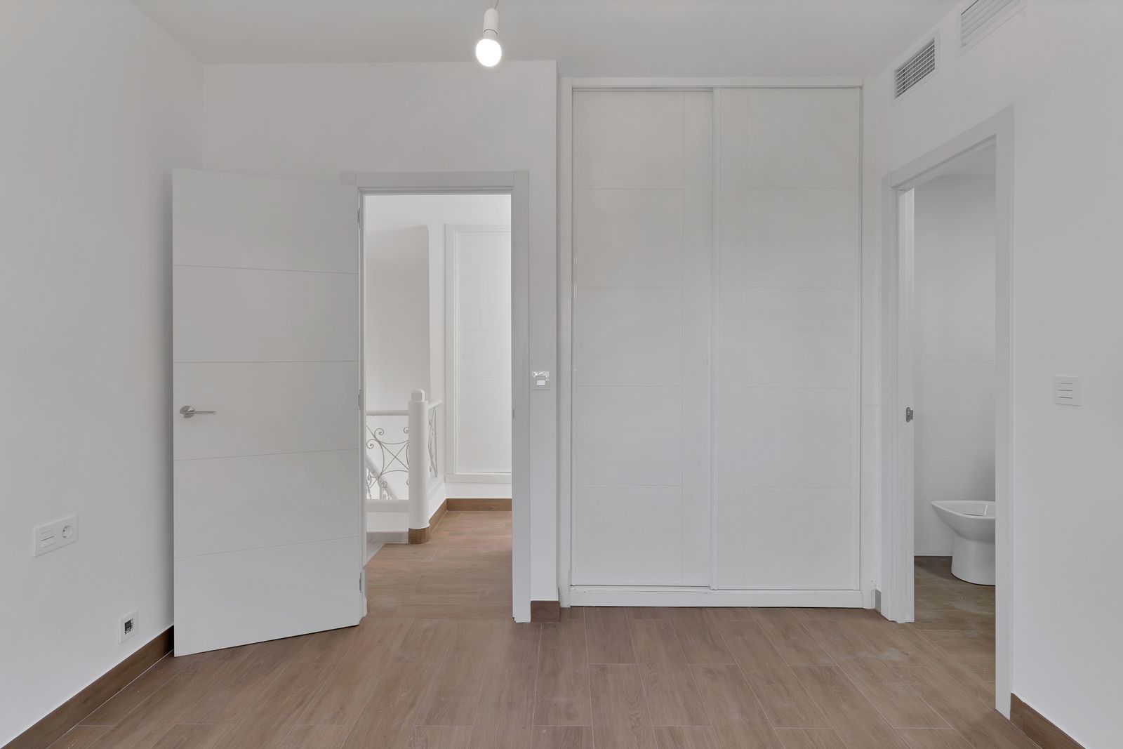Discover this magnificent, fully renovated townhouse located on Salamanca's market square in the heart of Malaga. With a floor area of 1,700 sq ft, this property combines the old-world charm of a 1940s building with unparalleled modern comfort. Ideal for large families or those who love to entertain, it has six spacious bedrooms, including three elegant suites. Each bedroom is equipped with built-in wardrobes and closets, offering optimal storage space.