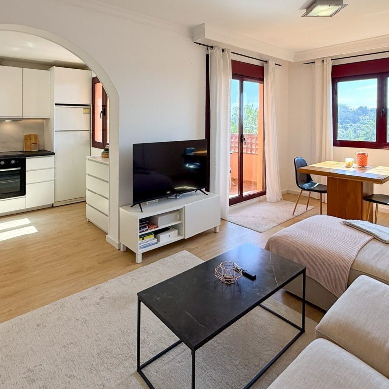This beautiful two bedroom flat is located in the prestigious community of Duquesa Village, a 4 minute drive to the beaches, bars and the marina of La Duquesa. The community has 5 swimming pools and paddle tennis court. In addition, the urbanization is very secure as it is gated with 24/7 security.