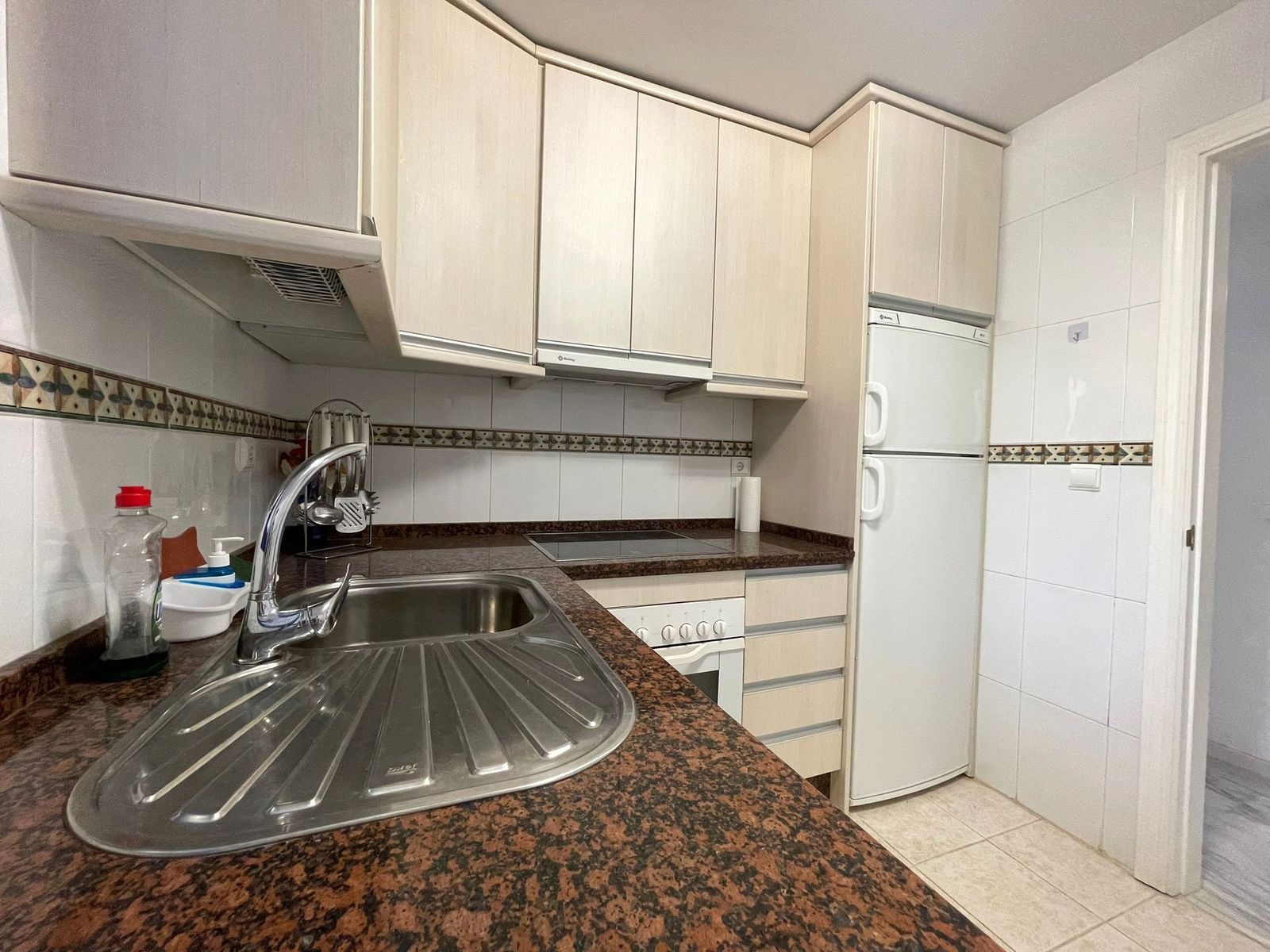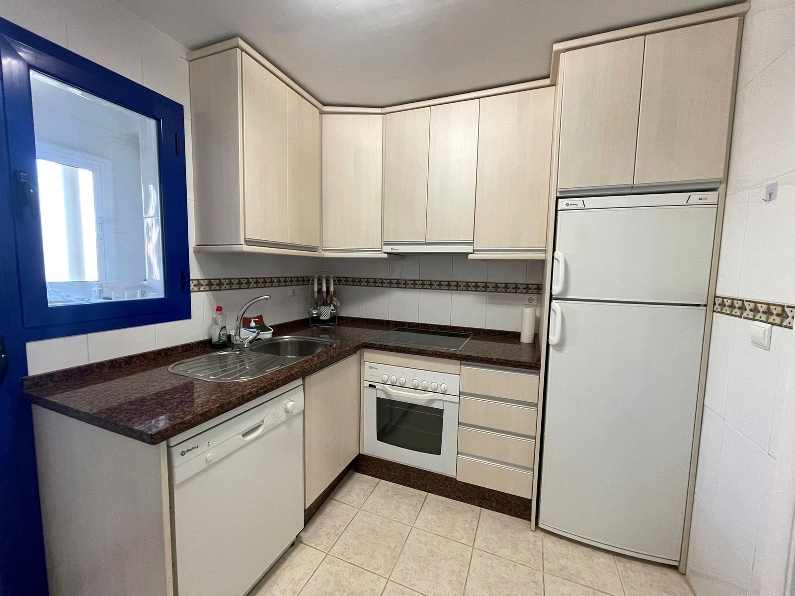 The home offers a spacious and very bright living-dining room, with large windows and direct access to a wonderful 15 m² terrace, from which you can enjoy impressive sea views, ideal for relaxing, sunbathing, or sharing evenings with family and friends.
