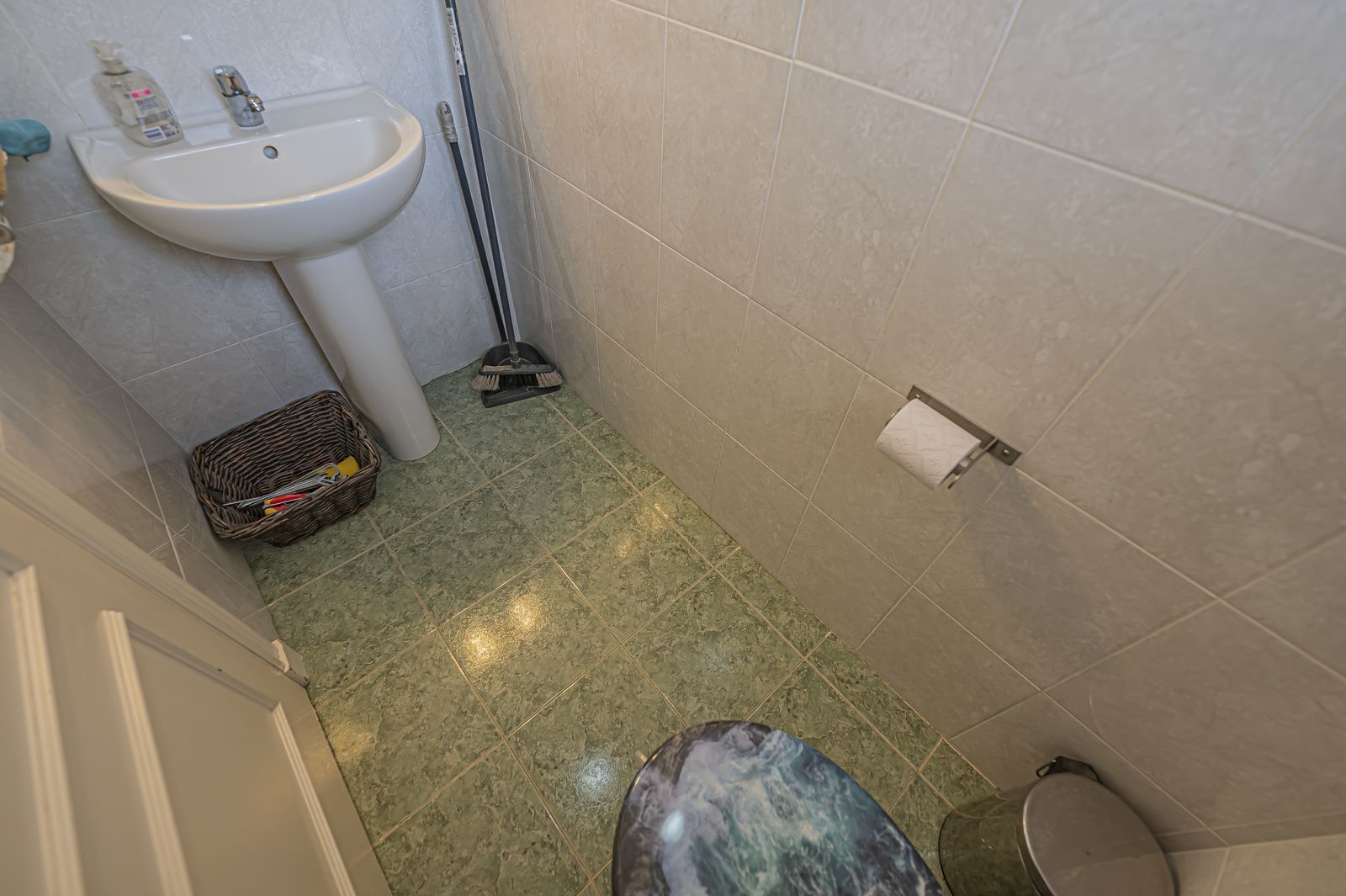 The property is distributed over several floors and offers a total of five bedrooms, three bathrooms plus a guest toilet, a living room with a separate kitchen, several terrace areas, a garage for one car, and an additional room in the basement.