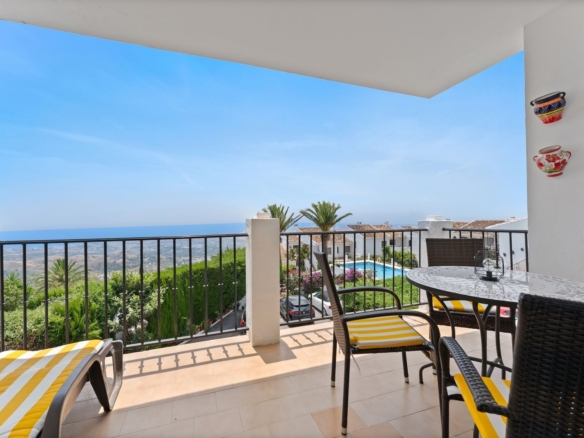 For sale a well-distributed 2 bedrooms and 2 bathrooms apartment with two terraces, built-in wardrobes, independent kitchen and pleasant views of the green areas and pool.