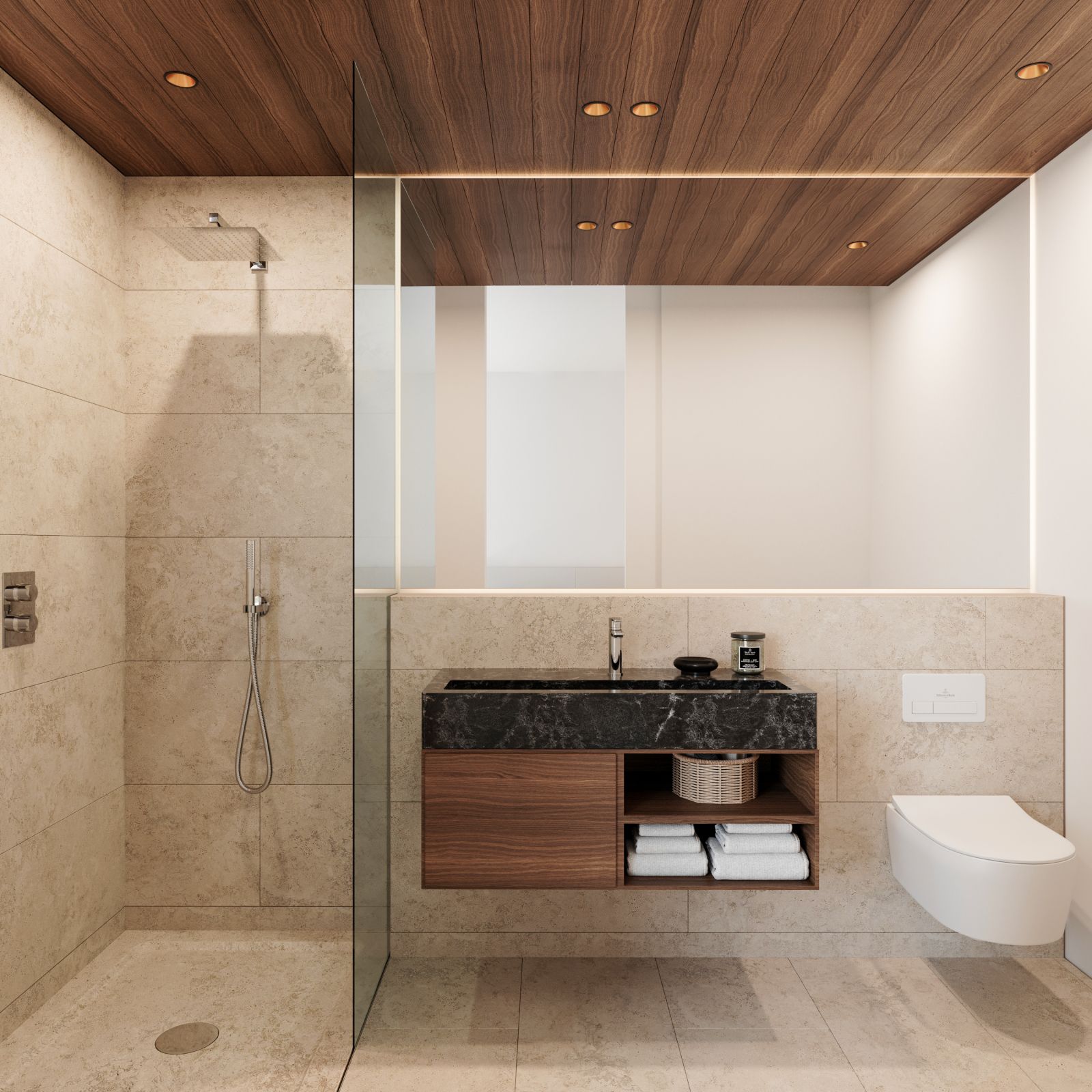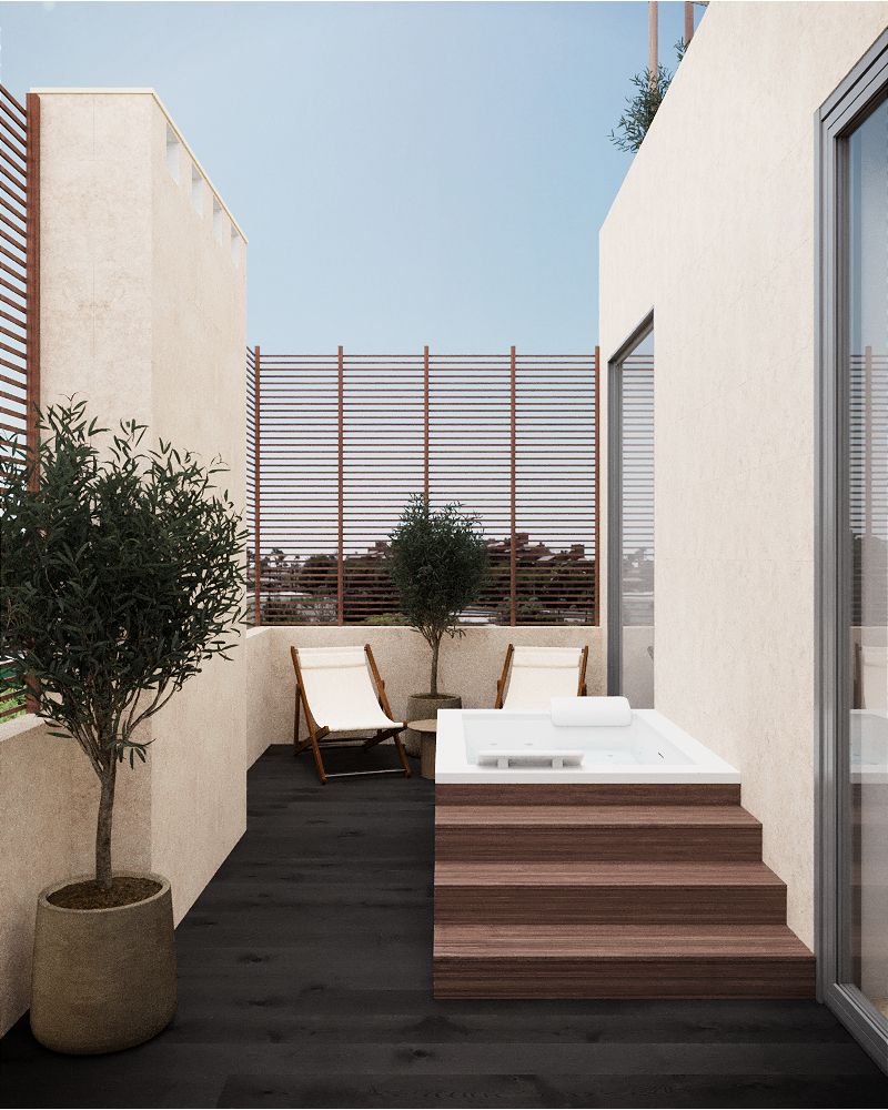 All apartments are equipped with underfloor heating, Schneider light switches, intelligent locks and air conditioning, as well as water-saving bathroom and kitchen fittings. Fully fitted and equipped kitchens. German Villeroy & Boch bathroom taps. Sliding doors unite the terraces and living areas as one, harmonising indoor-outdoor living. Some units are designed with movable walls to adapt to evolving families. Wooden Mallorcan blinds provide shade and allow air to circulate.