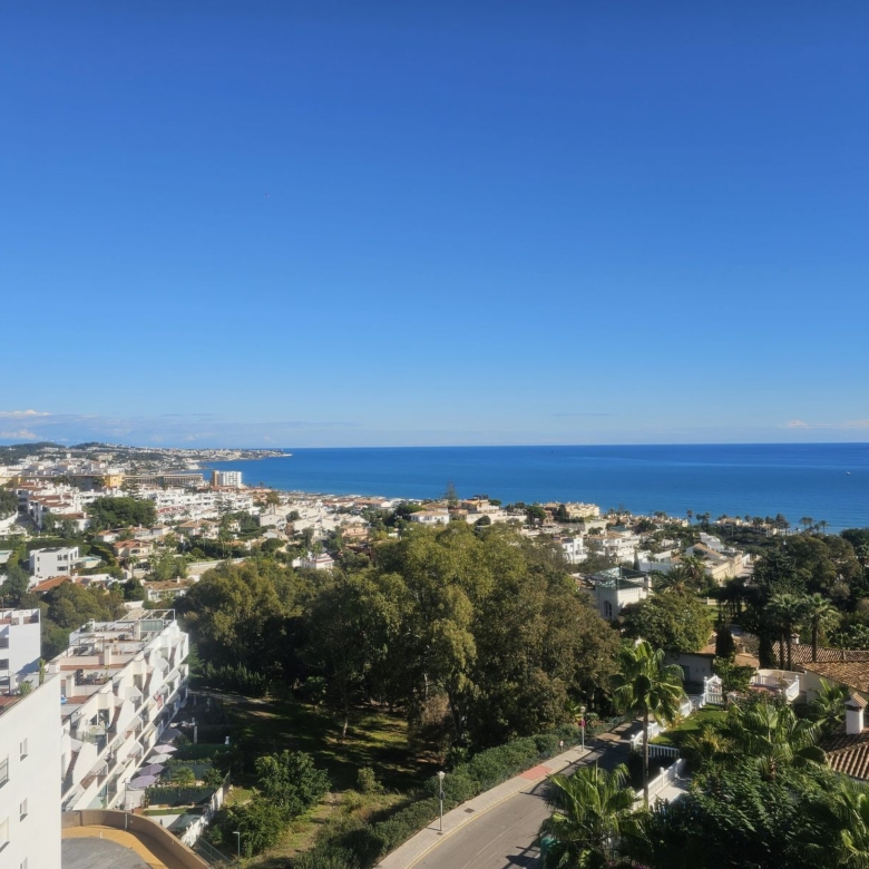This bright and airy corner apartment offers excellent potential for modernisation and enjoys impressive sea views. A spacious terrace, accessible from both the living room and main bedroom, flows directly into a secluded garden area, creating a tranquil and secluded outdoor space.