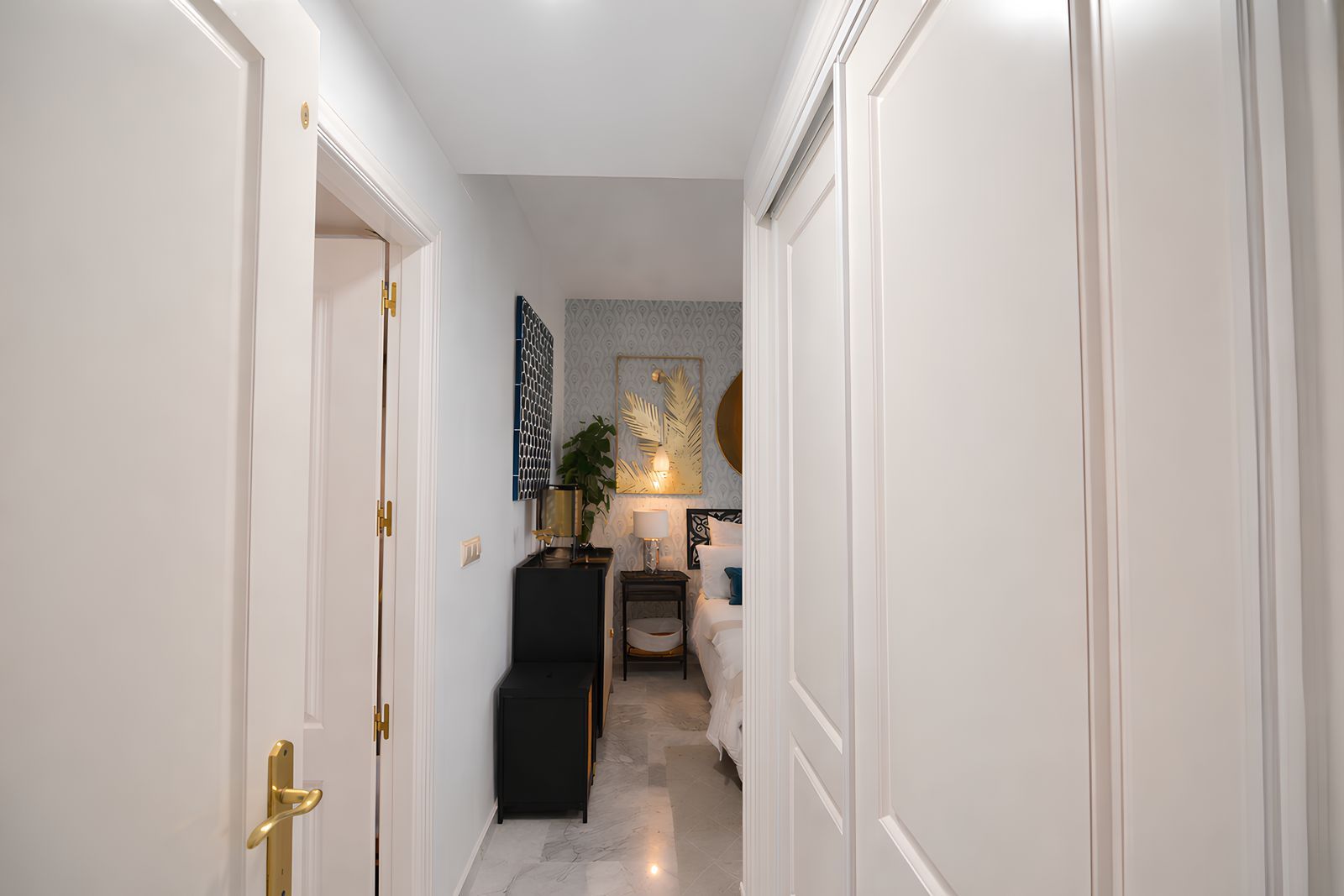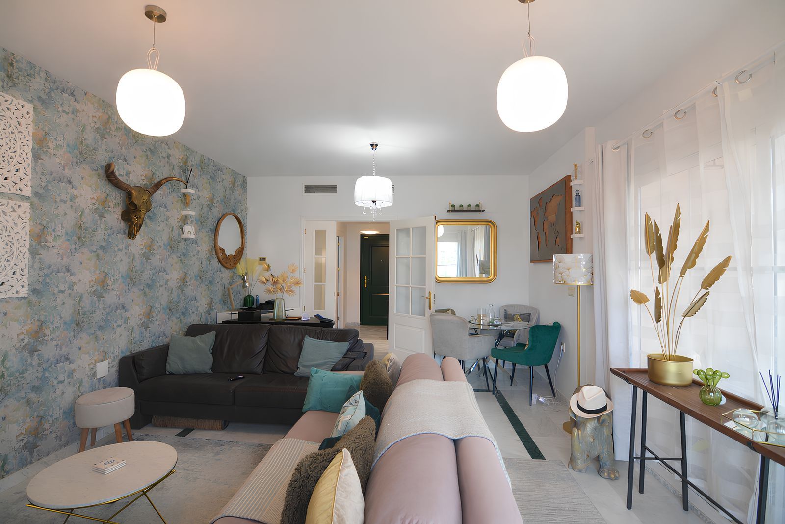 It features a spacious living room with direct access to a beautiful terrace, from which uninterrupted views of the golf course can be enjoyed, ideal for relaxing and making the most of the Costa del Sol climate.