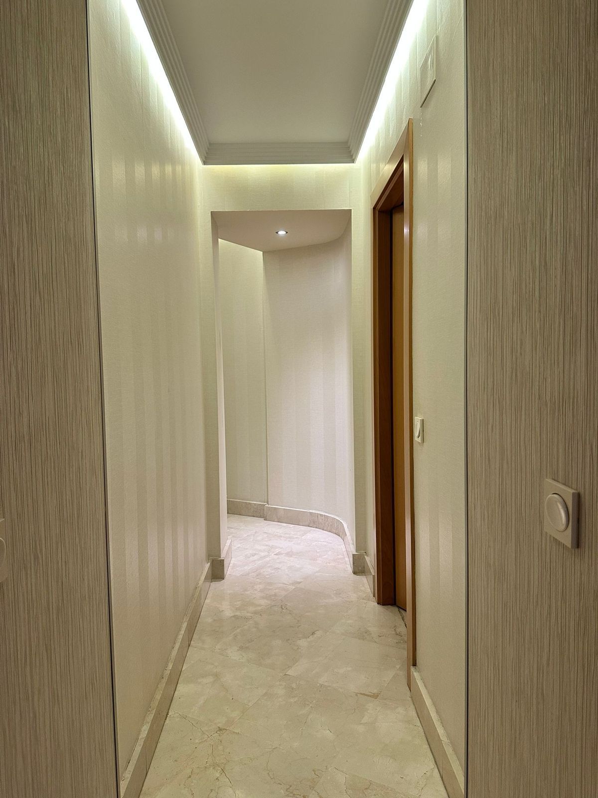 The interior layout offers two bedrooms and two bathrooms, including a master bedroom, a spacious living-dining room with a very cozy atmosphere, and a generously sized separate kitchen. The property has been modernized with a contemporary kitchen, renovated bathrooms, good quality flooring, and a neutral and elegant aesthetic. It has air conditioning, well-designed lighting, and practical storage solutions.