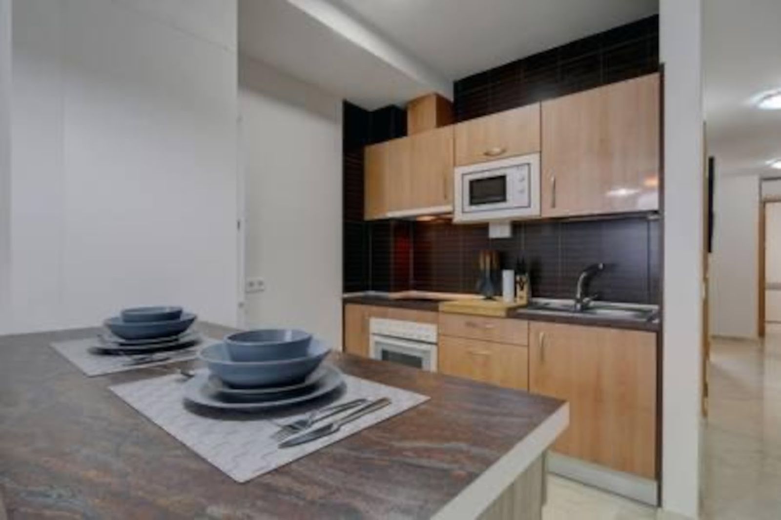 Main Features- Built area: 75 m²- 2 bedrooms with fitted wardrobes- 1 full bathroom with bathtub and glass screen- Large independent storage room, perfect for storage or as an auxiliary space- Open-plan kitchen integrated into the living-dining area- Fully furnished and equipped- Building with lift and well-maintained common areas- Active tourist licence (documentation available)