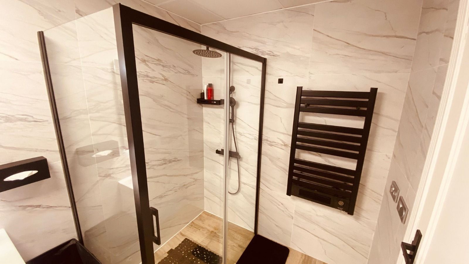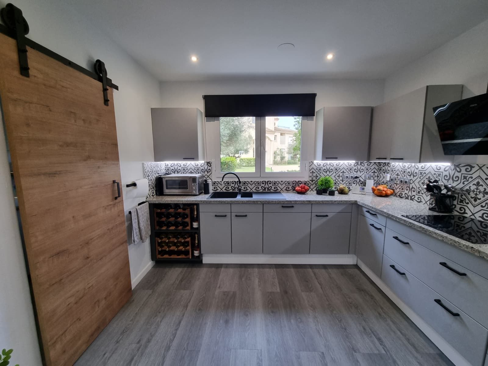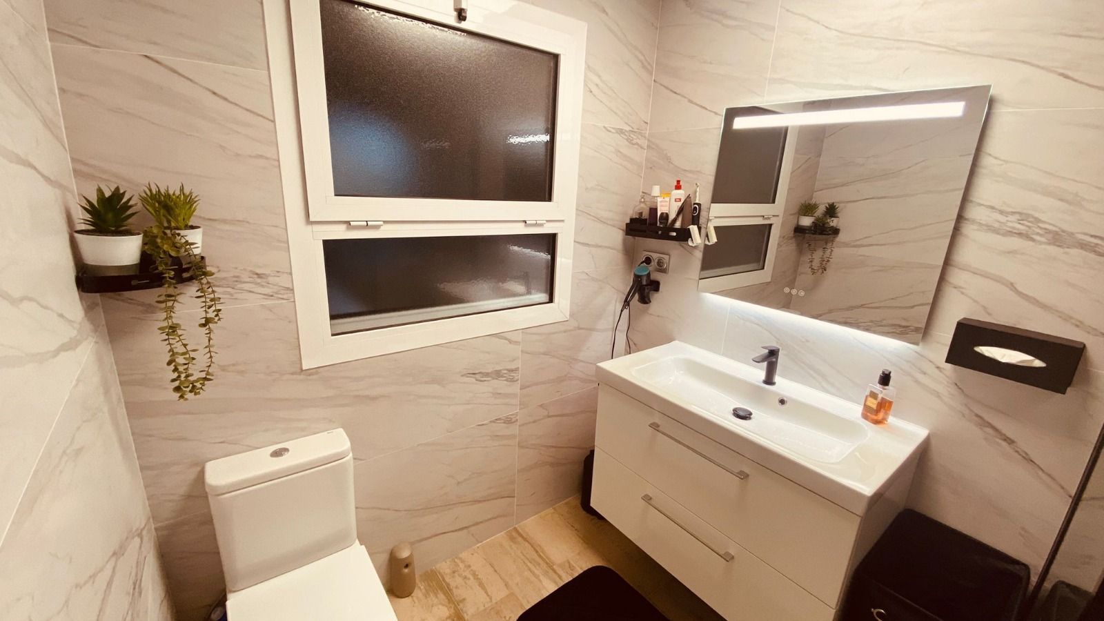 The property offers three generous en-suite bedrooms, plus a guest toilet. The bathrooms have been upgraded with high-quality finishes, including underfloor heating in two of them. The modern fully fitted kitchen has been redesigned with premium materials and includes a separate laundry room and pantry. Two of the bedrooms share a charming covered terrace, while the master suite opens directly onto the main terrace.
