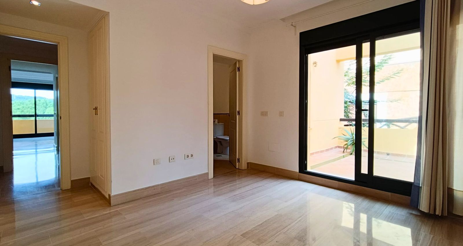 Sotogrande Alto: Discover the highest level of comfort and elegance in this stunning 3-bedroom, 3-bathroom apartment with panoramic views of the prestigious Almenara Golf Course and its tranquil lake. This exclusive residence is designed to offer a sophisticated lifestyle, featuring a fully equipped kitchen, a practical utility room, and a guest cloakroom. The spacious living and dining area, complete with a cozy fireplace, opens onto a large terrace perfect for enjoying the scenic landscape.